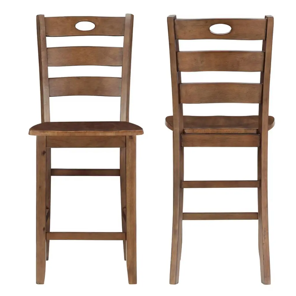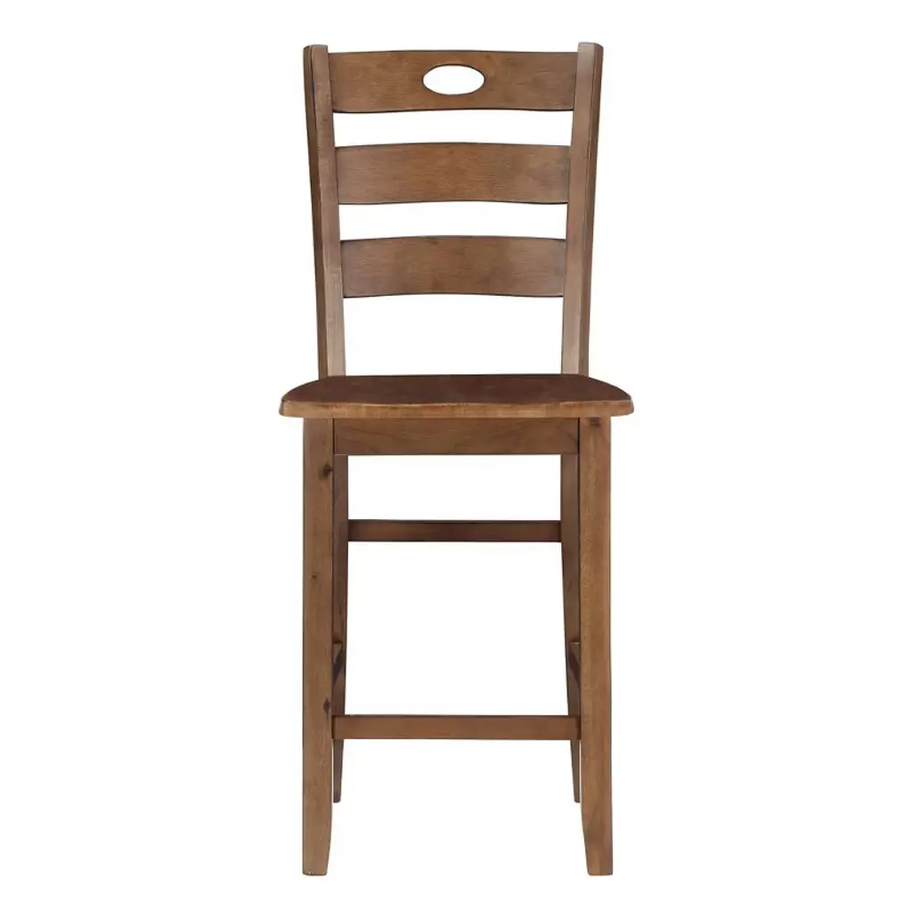 Meet the Salem Counter Chairs, a durable set of 2 crafted from solid rubberwood and birch veneers, ensuring strength and stability for your dining area. The multi-step tobacco brown finish enhances the natural beauty of the wood grain, adding to its allure. Enjoy comfortable and stable seating with the solid wood chair seat shaped for support, while the convenient oval chair back grip facilitates easy movement. With chair base stretchers providing added stability for these taller stools, rest assured in their reliability. Embrace the casual style of the Salem Counter Chairs, reminiscent of farmhouse or shaker designs, seamlessly blending into any space where a casual dining option is needed. Upgrade your dining experience with the Salem Counter Chairs, offering both style and functionality for your home.