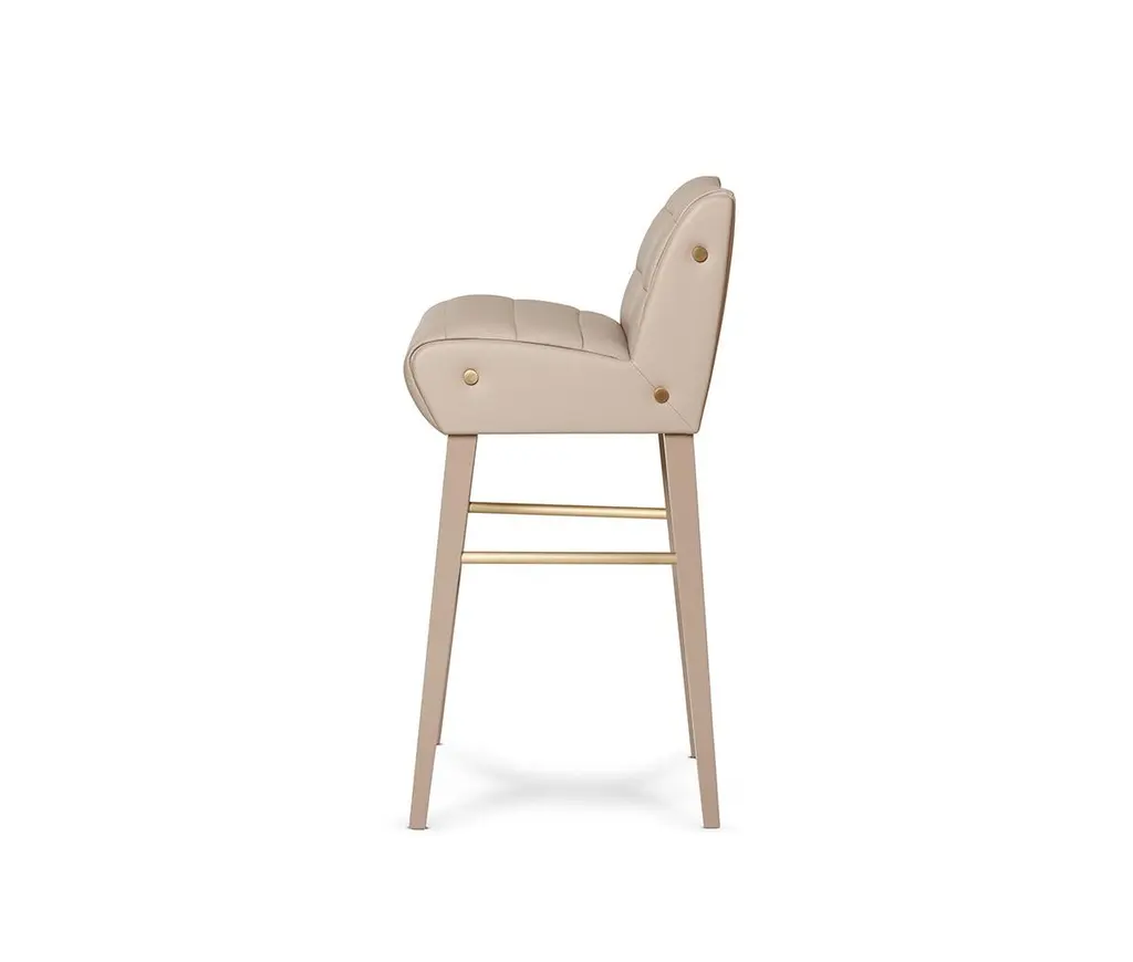 Newman Counter Stool by MunnaDimensions: D 50 x W 40 x H 92 cm. SH: 70 cm.Materials: Solid wood, foam, brass, and leather.Finish: Upholstery: Leather, ref. Cream, L02. Legs: Cream gloss lacquer. Metal detail: Brushed brass.Available in all Munna fabrics except Wild Silk. Available in client’s ownmaterial. Available upholstered, Rosewood or Ebony veneer, solid Walnut, Wengé stain, or lacquer in all RAL colors, in matt or gloss. Metal details are available in Brass, Nickel or Copper in polished or brushed. Handmade in Porto. Please contact us.Established in Porto in 2008, Munna is a furniture design brand renowned for creating handmade upholstery with unmatched craftsmanship, seamlessly blending noble materials and timeless design, for both commercial and residential projects.Made by hand in Porto, Munna’s pieces honor the profound heritage of craftsmanship, while drawing inspiration from history’s most influential artistic periods. Munna’s pieces are made of the finest fabrics such as cotton velvet, twill, leather, and silk; the finest wood veneers, such as ebony, walnut, and rosewood; sumptuous gold, silver, and copper leaves, metal details in brass, nickel, and copper, and superior lacquers.
