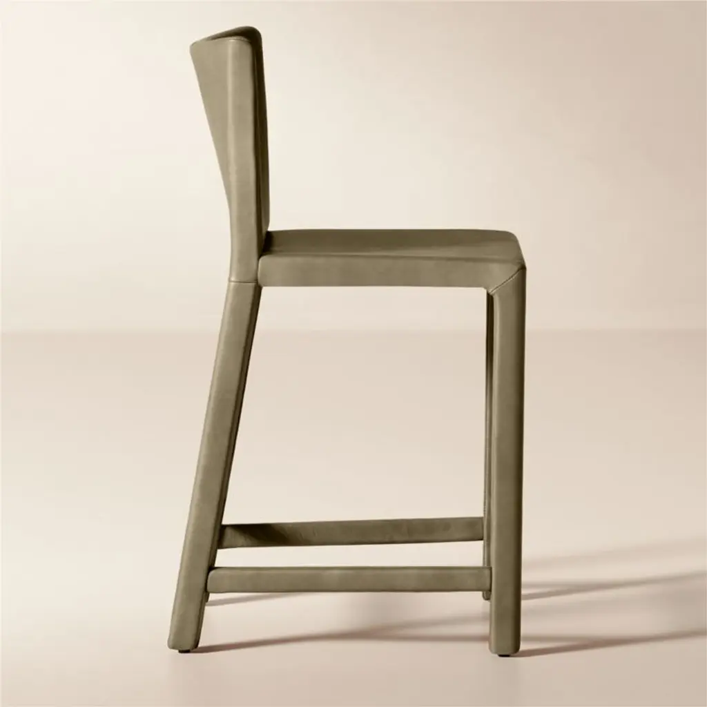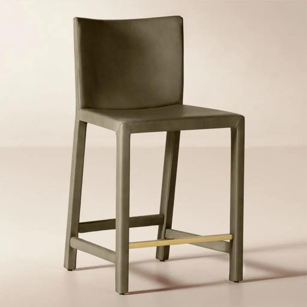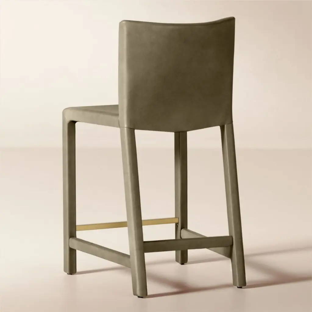Sleek lines and tailored detailing elevate modern counter stool by Caleb Zipperer. Fully upholstered in supple full grain aniline leather, stool features crisp mitered corners and stitching for a clean, structured look. CB2 exclusive.