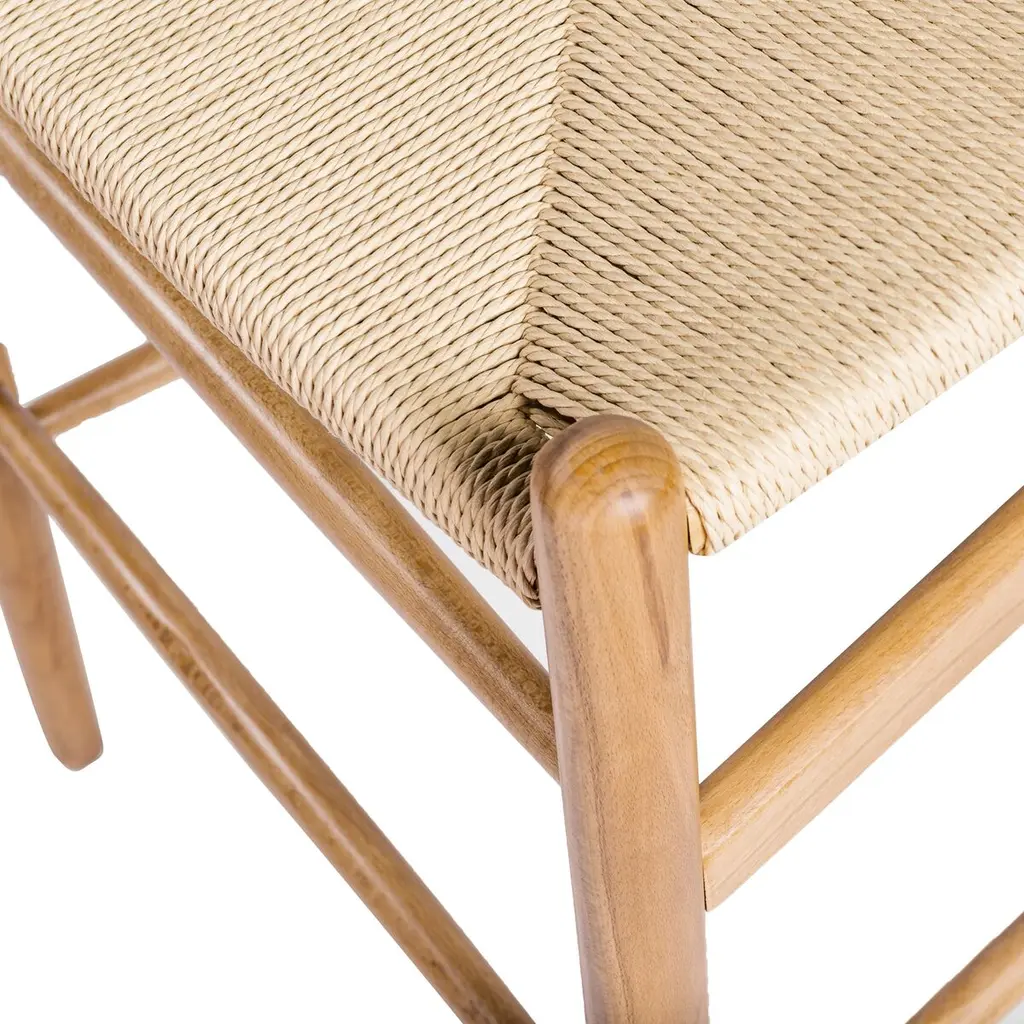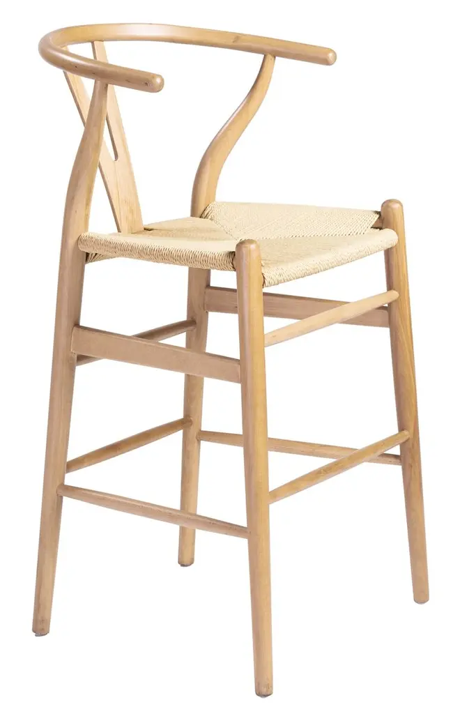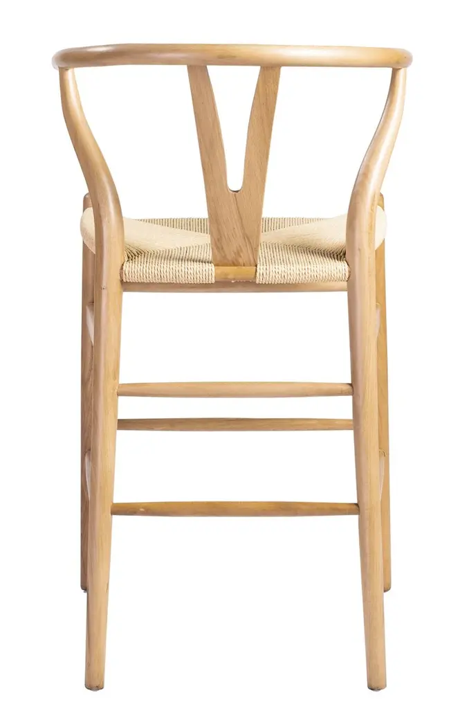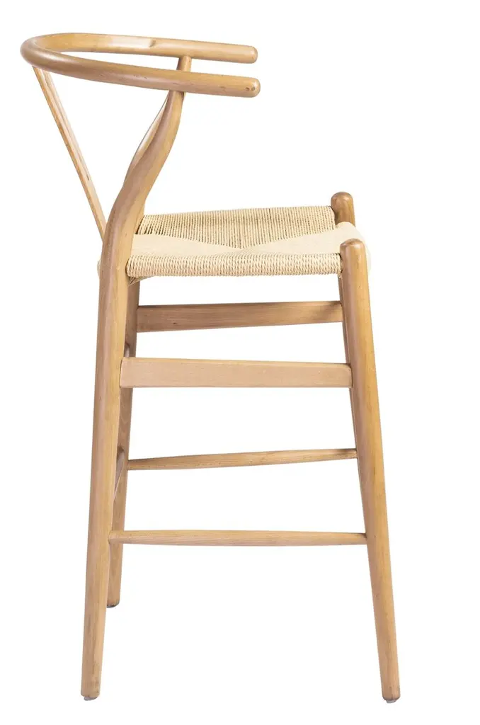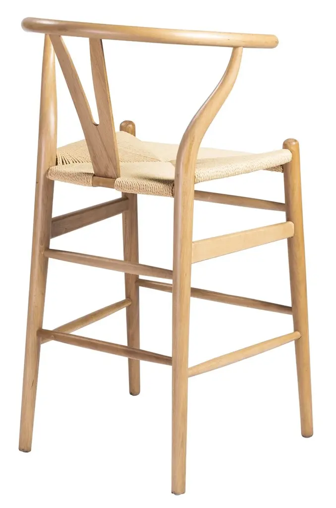Century-old finishing techniques add to the Danish Modern finesse of this counter stool. The curved back and woven rush seat ensure that the stool is as comfortable as it is lovely. Plastic glides help protect your floors.