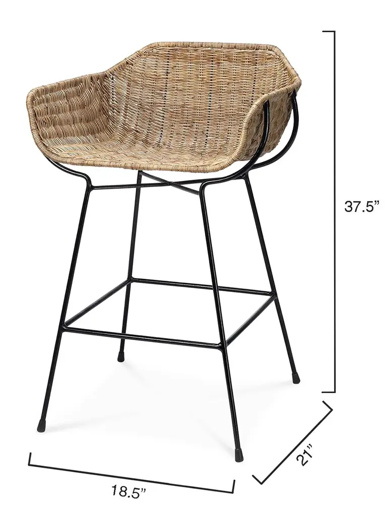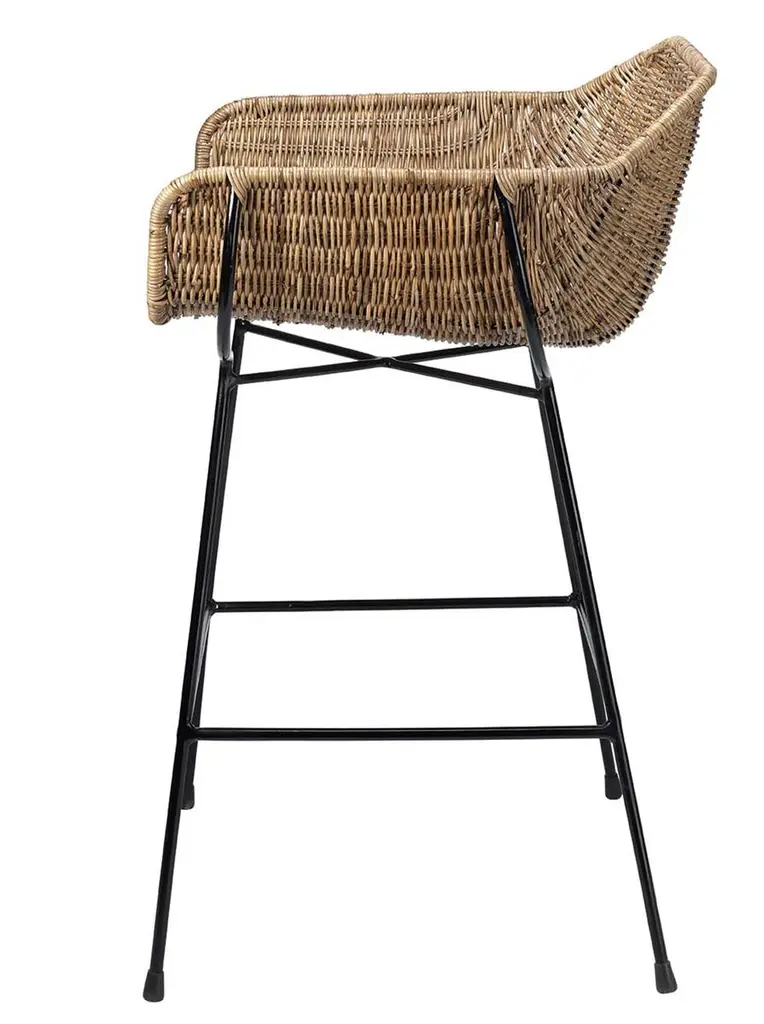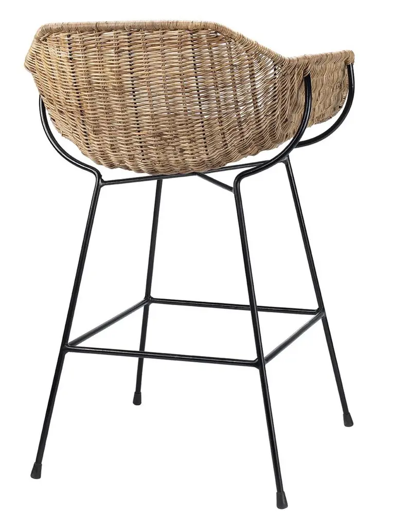Discover the perfect blend of casual coastal style and modern design with this stool. Featuring broad, woven rattan seats that offer cradling comfort and support. Sturdy yet lightweight metal legs in a sleek black steel finish provide a stylish contrast to the warmth of the natural rattan. Ideal for any space needing a touch of relaxed sophistication, these stools effortlessly combine comfort and contemporary flair.