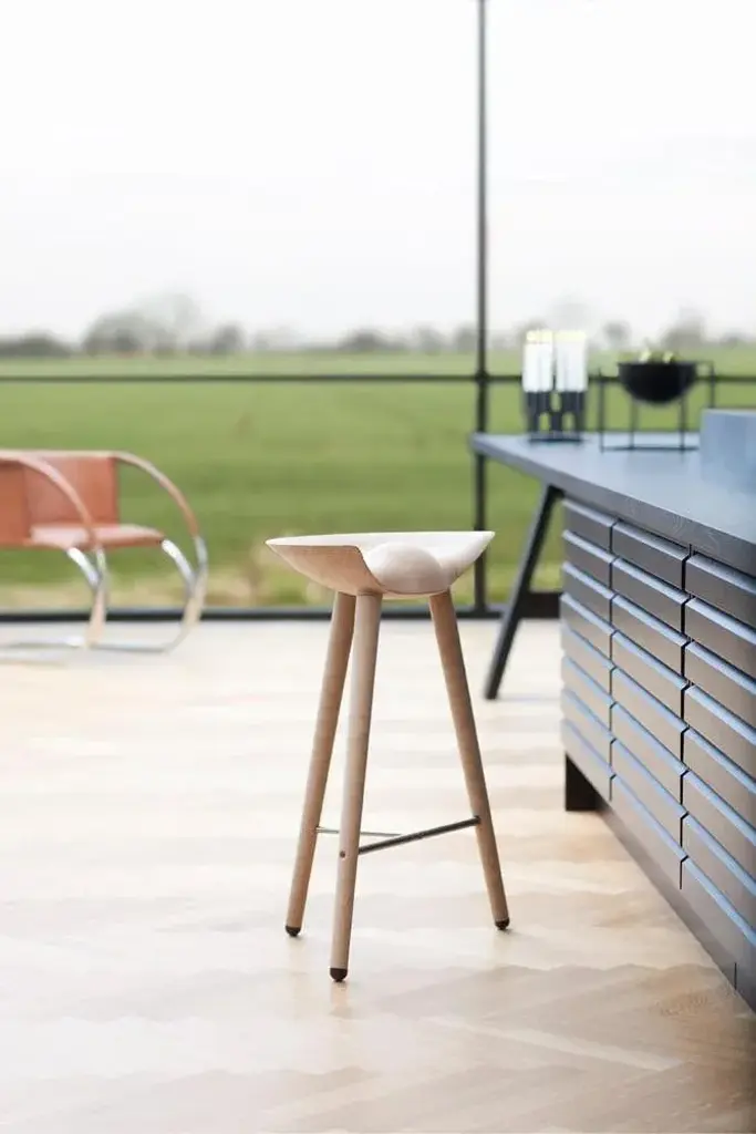 Oak and copper counter stool by Lassen Dimensions: h 69 x w 36 x l 55.5 cm Materials: Oak, Copper In 1942 Mogens Lassen designed the Stool ML42 as a piece for a furniture exhibition held at the Danish Museum of Decorative Art. He took inspiration from the stools used by the shoemakers of the past, and transferred the light, elegant look to the creation of this sculptural three-legged stool. The Stool ML42 is still manufactured in Denmark to this day with a focus on quality and Danish craftsmanship, and is considered a collector’s item by international design connoisseurs.