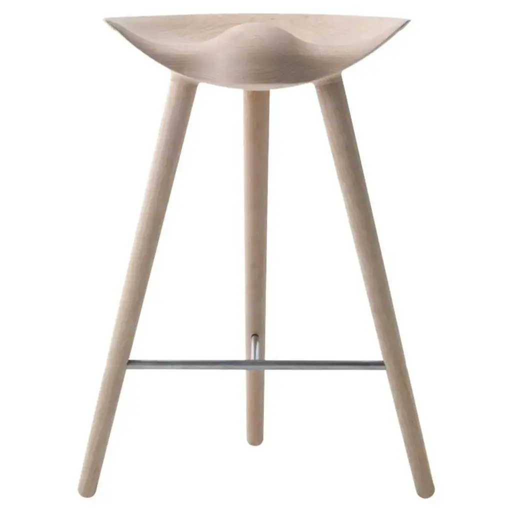 Oak and stainless steel counter stool by lassen dimensions: h 69 x w 36 x l 55.5 cm materials: oak, stainless steel in 1942 mogens lassen designed the stool ml42 as a piece for a furniture exhibition held at the danish museum of decorative art. He took inspiration from the stools used by the shoemakers of the past, and transferred the light, elegant look to the creation of this sculptural three-legged stool. The stool ml42 is still manufactured in denmark to this day with a focus on quality and danish craftsmanship, and is considered a collector’s item by international design connoisseurs.