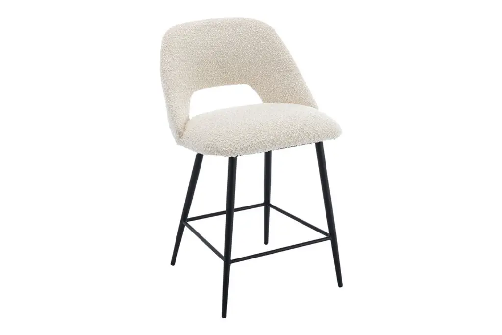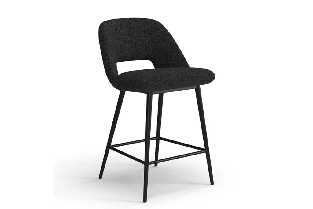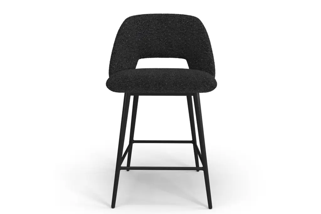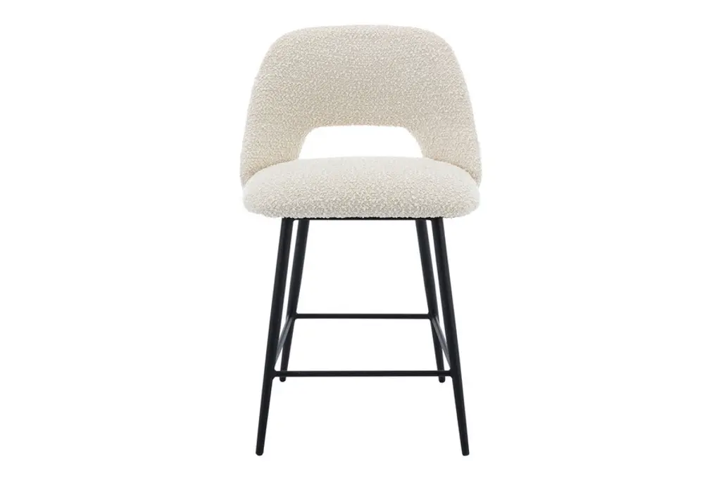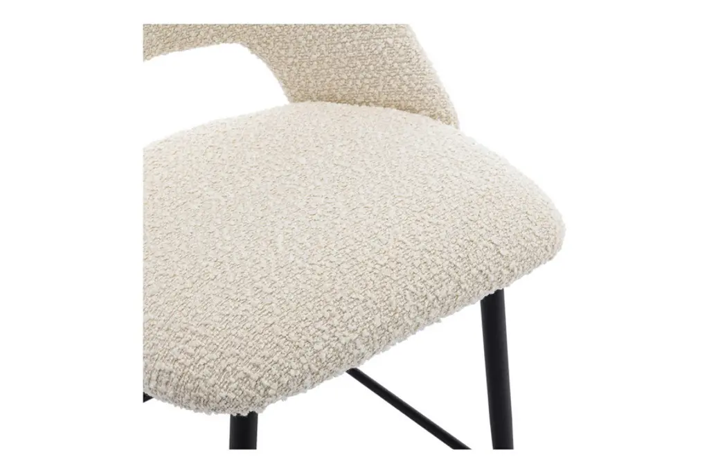 The Oliver Boucle Counter Stool is a modern stool with superior comfort and an incredibly charming aesthetic. Its high-density foam plush padding is upholstered in a soft ivory, black or grey boucle fabric for a luxurious dining experience. It is supported by a sturdy black steel base with a solid footrest for proper stability and easy seating. It features a remarkable arched cut-out backrest maximizing breathability and emphasizing its visual appeal. These stools come in a set of 2 upon arrival! If you want excellent comfort and contemporary presence, this is a high-quality stool that will truly elevate your kitchen design.