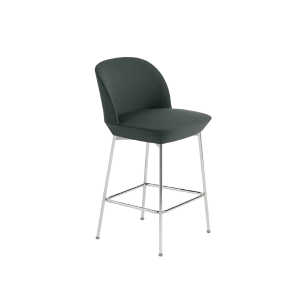 Muuto's distinctive molded-foam Oslo adds a sleek stool variation in both bar and counter heights. Sheathed in a choice of Kvadrat textiles, the resiliantly soft seat and embracing curved backrest offer welcoming comfort. And the steel frame, available in either anthracite black or chrome finish, includes a thoughtful footrest, allowing for sitting at multiple angles for hours at a time. This extension of designers Anderssen & Voll's unique seating is equally apropos for the home, restaurant or workplace.