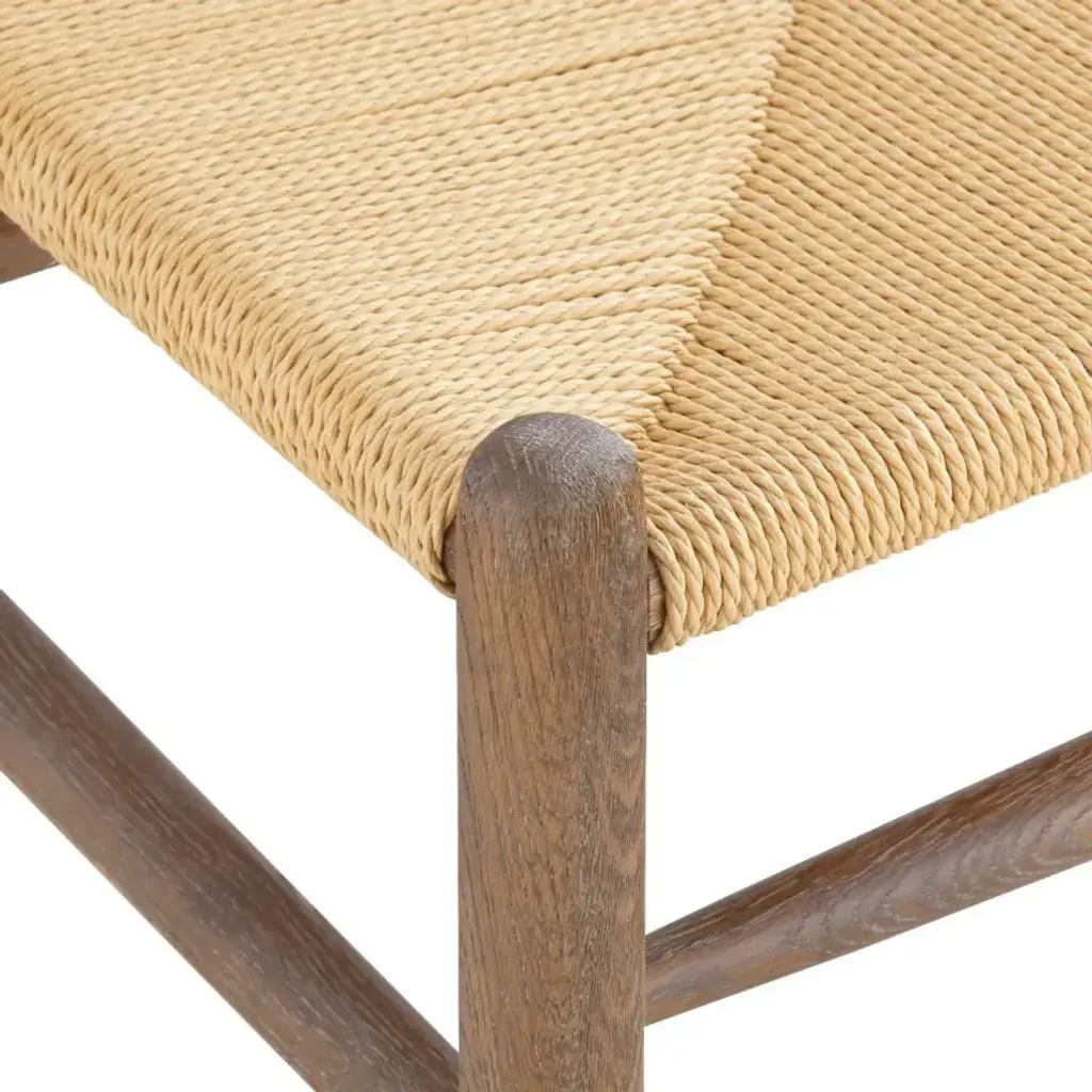 Modern design rooted in rustic charm—the Oslo Counter Stool is a beautiful embodiment of mid-century Scandinavian aesthetics. Our craftsmen uphold the ideals of function and comfort, crafting a stem-bent frame of solid oak with a curved back for effortless support. The Oslo’s unique profile is marked by lightness and simplicity, though in signature Scandinavian style, it remains connected to nature. A limed finish from its framework back to its subtly tapered stretchers highlights the natural grain of the wood, while a hand-fashioned rope seat adds more organic texture and appeal. Its cool minimalism makes it a wonderful accent seat in contemporary spaces, or a way to update classic country homes as a set around a kitchen island.