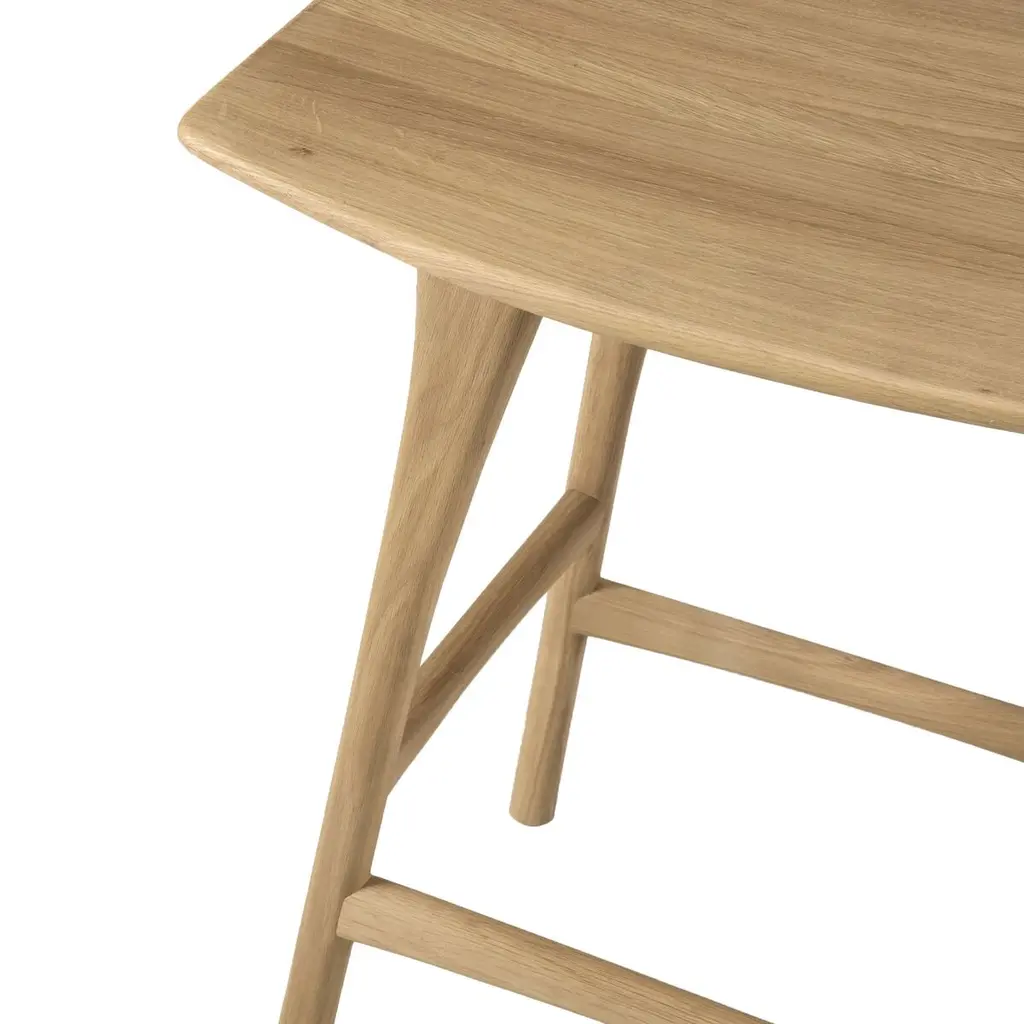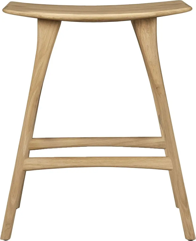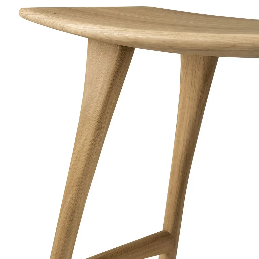 Crafted of oak—a hardwood known for its distinctive grain and resistance to scratches and dust—with a contoured seat and tapered legs, this counter stool adds warmth and sophistication to any space.