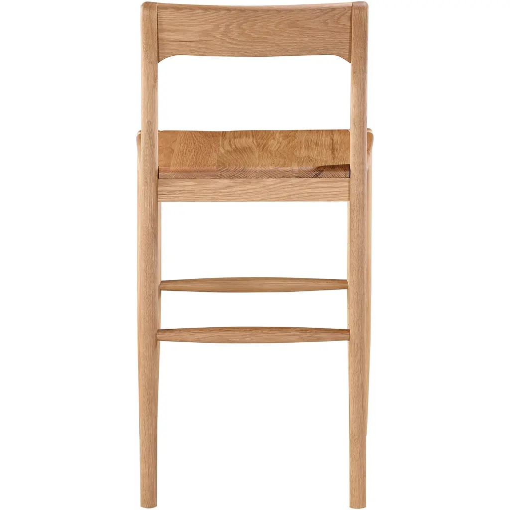 Available in blackened oak, natural oak and walnut, the Owing counter stool is a sophisticated spin on the traditional. Its mid-height, curved, open-back design combines comfort with casual appeal while its solid wood frame creates a timeless, mid-century silhouette—a seat that is as distinguished as it is inviting.