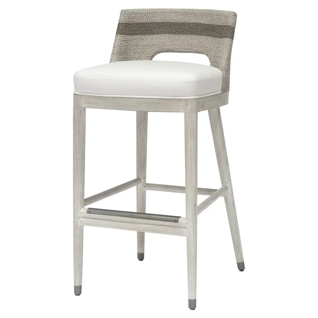Palecek Fritz Coastal Beach White Performance Striped Grey Rope Counter Stool