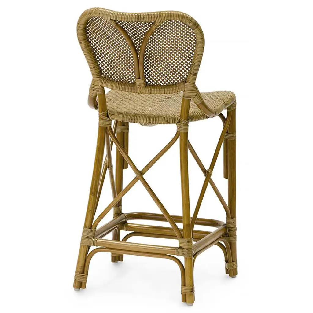 Palecek Jordan Coastal Beach Brown Woven Rattan Counter Stool