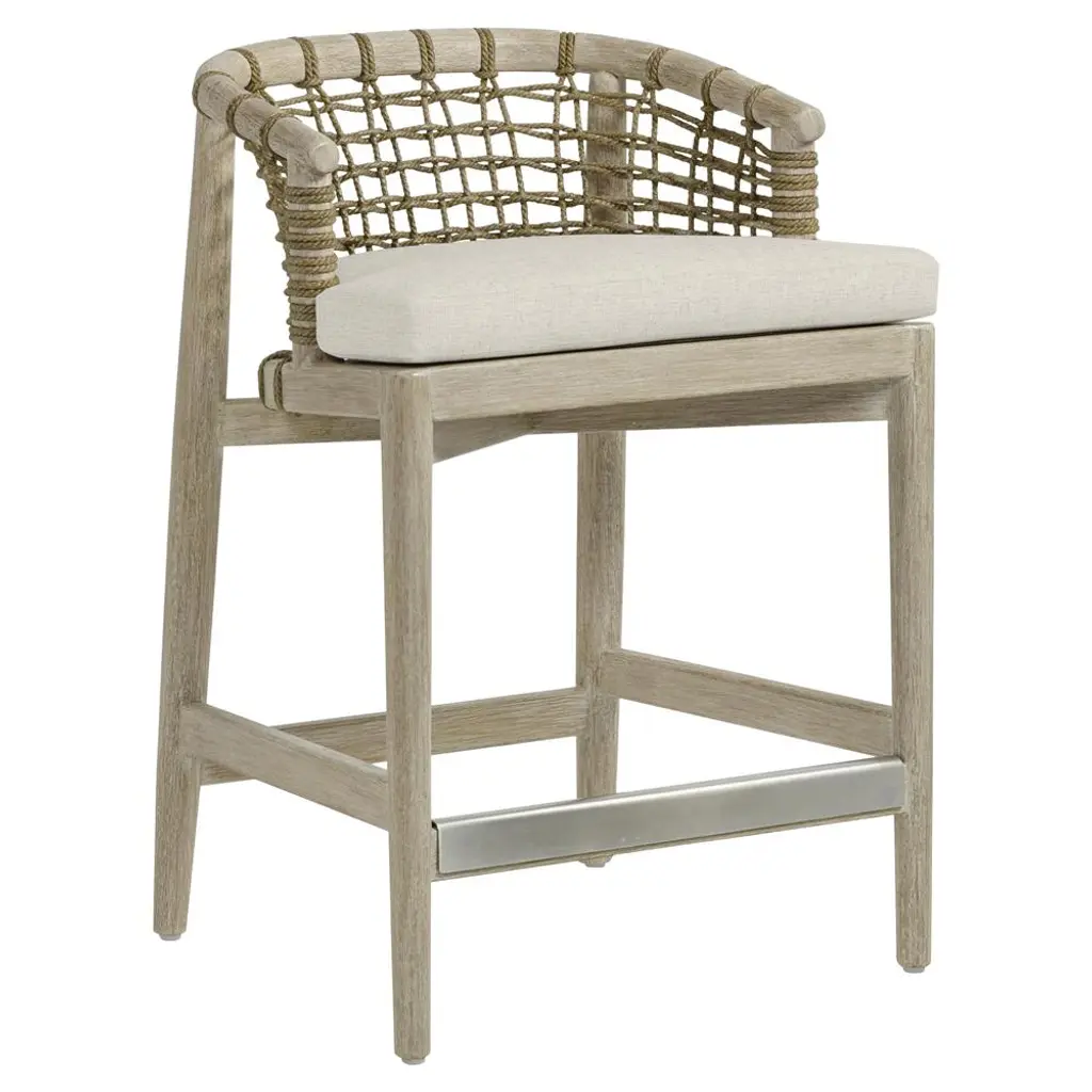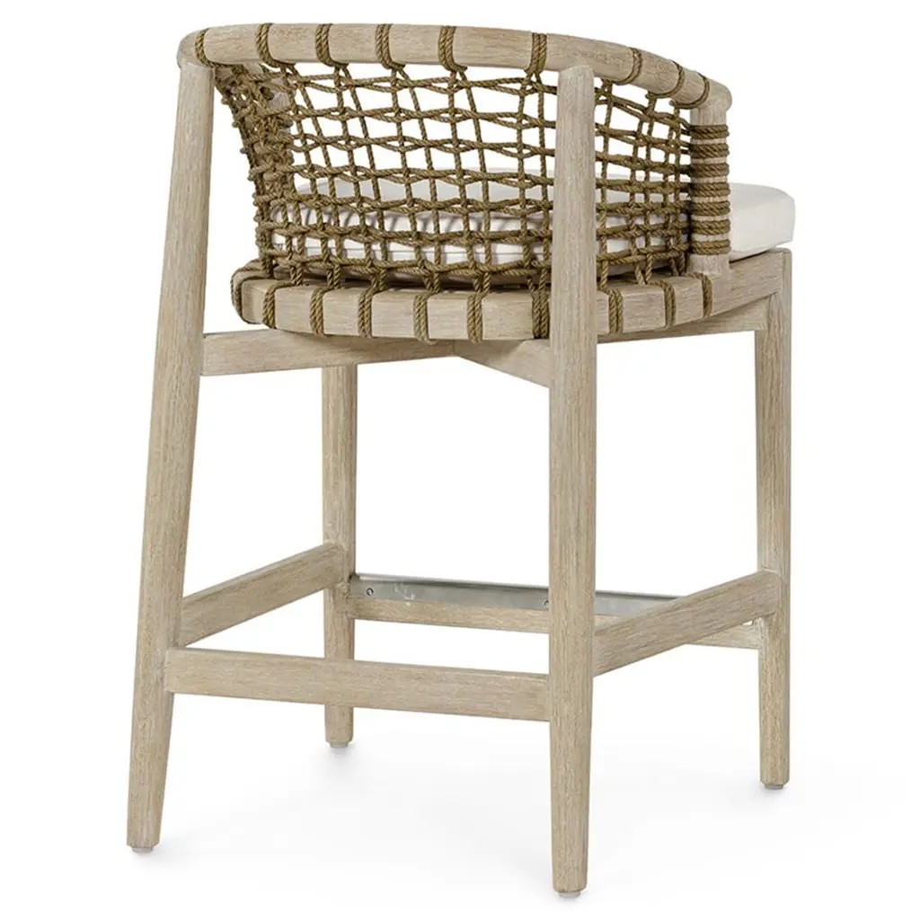 Palecek Melrose Coastal White Performance Off White Hardwood Barrel Counter Stool