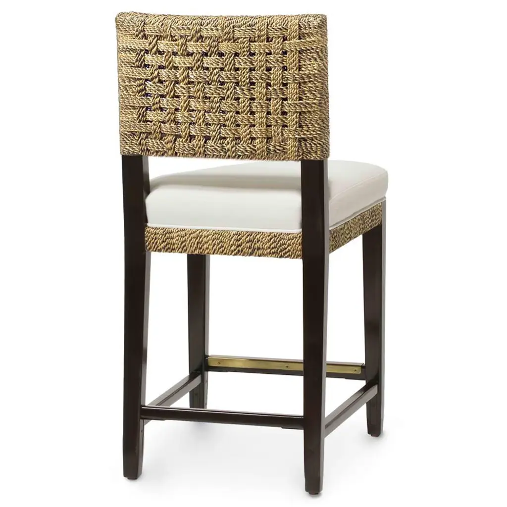 Palecek Panamawood White Upholstered Natural Seagrass Brown Wood Frame Counter Stool