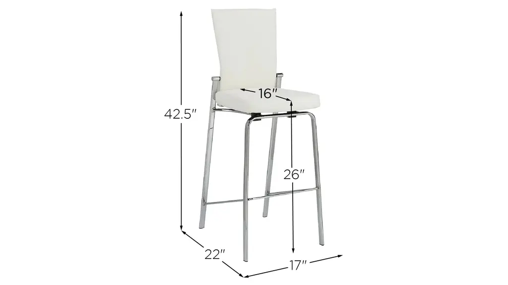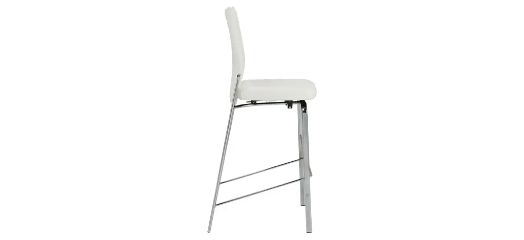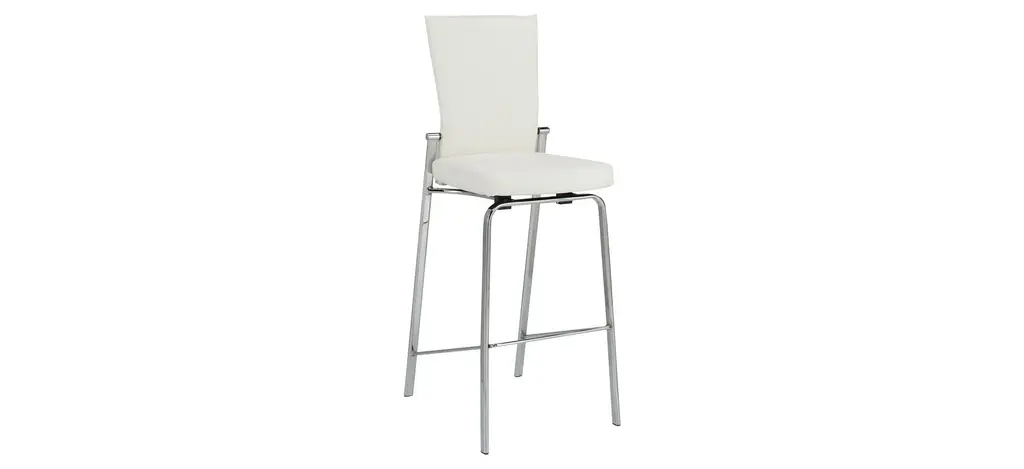 Enjoy stylish contemporary seating with the Paloma motion back counter stool. White faux leather and a reflective steel frame create a stunning modern look, while the padded seats offer ample comfort.