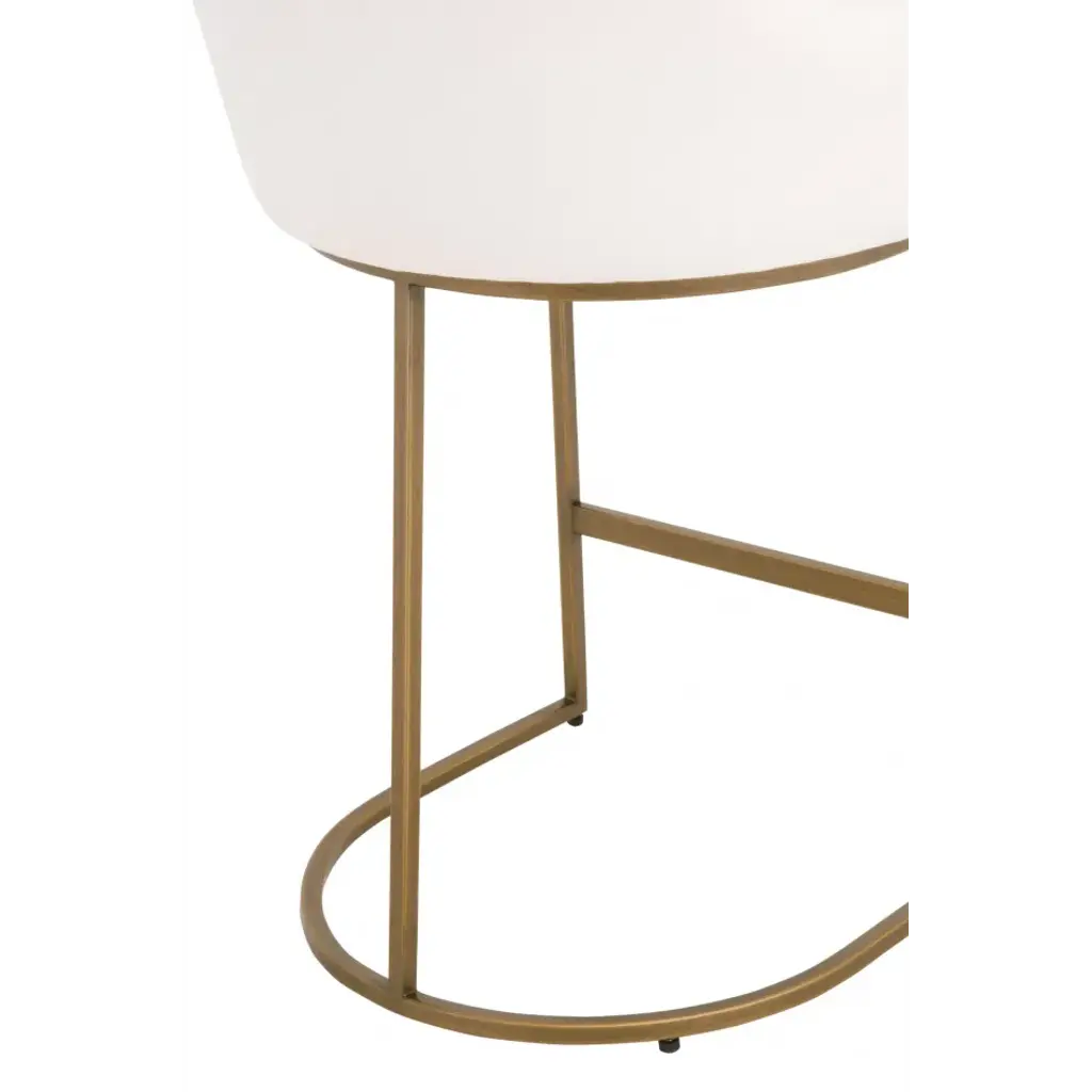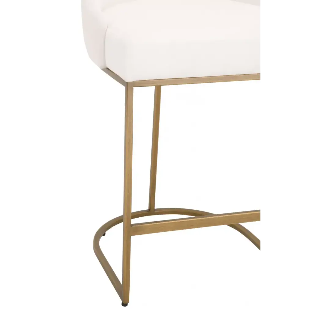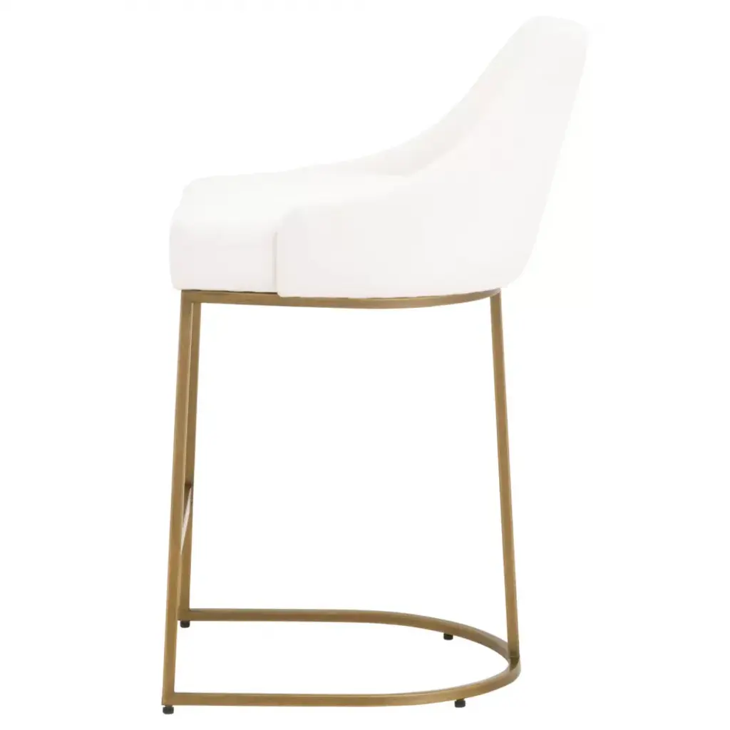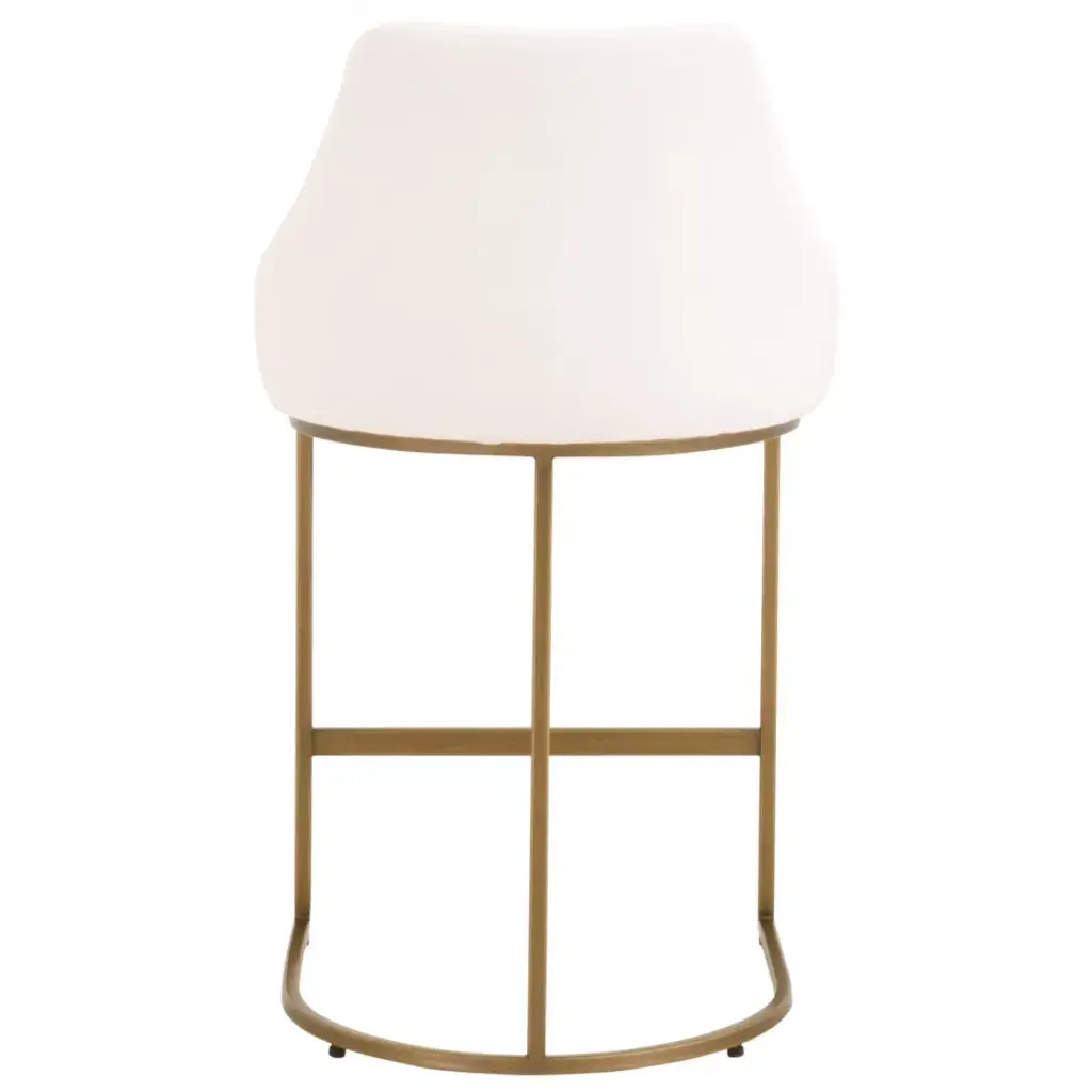 This gorgeous counter stool pairs sophistication with modern elegance. The Livesmart Peyton-Pearl fabric perfectly compliments the brushed gold decorative base. With a wide curved back and stain resistant fabric, this counter stool is a comfortable and practical way to add transitional style to your dining room or kitchen.
