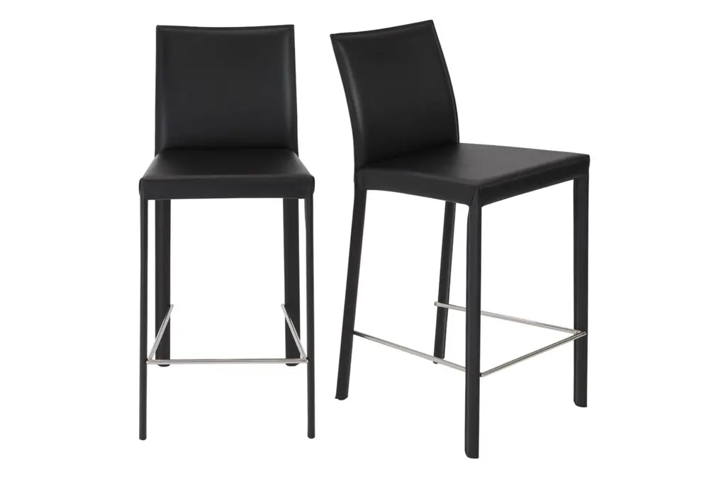 The Parson Black Faux Leather Upholstered 26" Counter Height Stool Set of 2 with Back offers a stylish and comfortable seating solution for your dining room or kitchen. These contemporary stools feature a sleek armless design and are upholstered in durable regenerated leather, providing a sophisticated touch to any space. The cushioned seats ensure maximum comfort, making them perfect for everyday use.