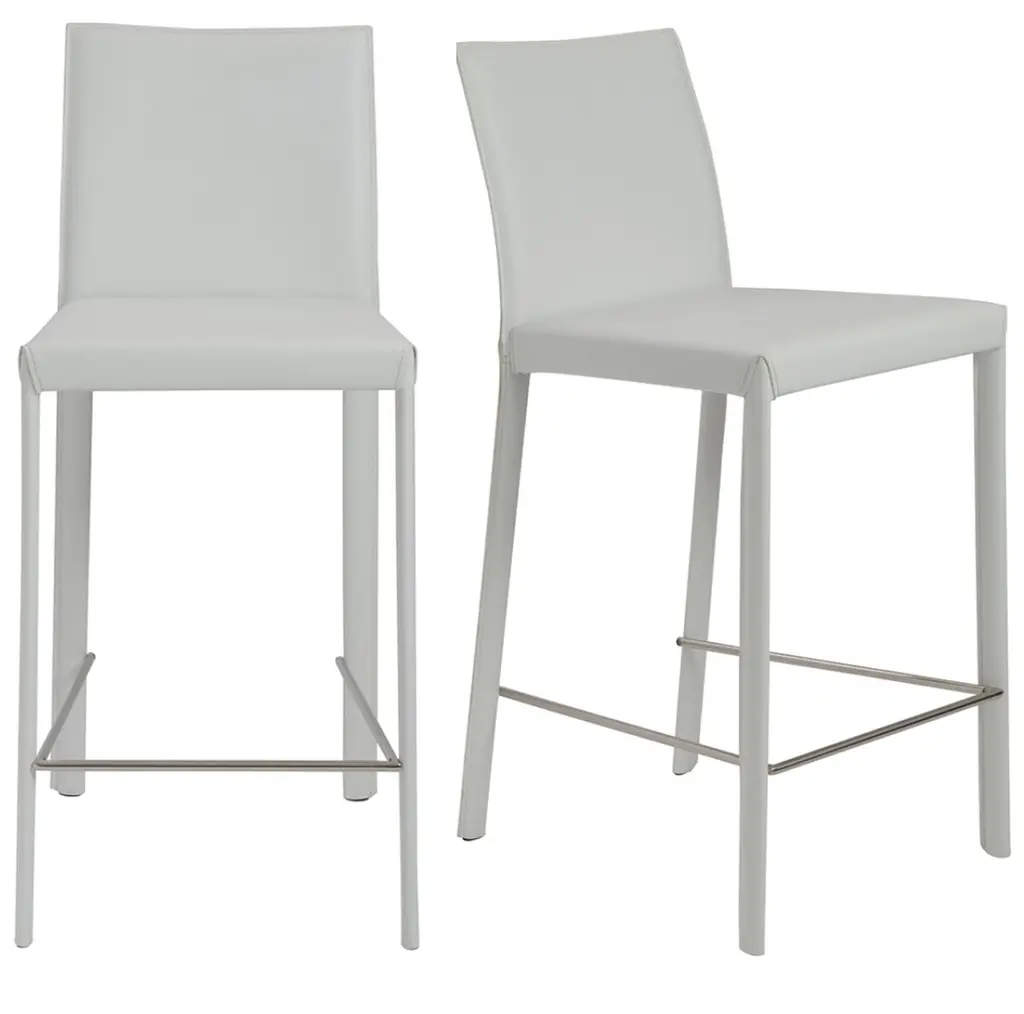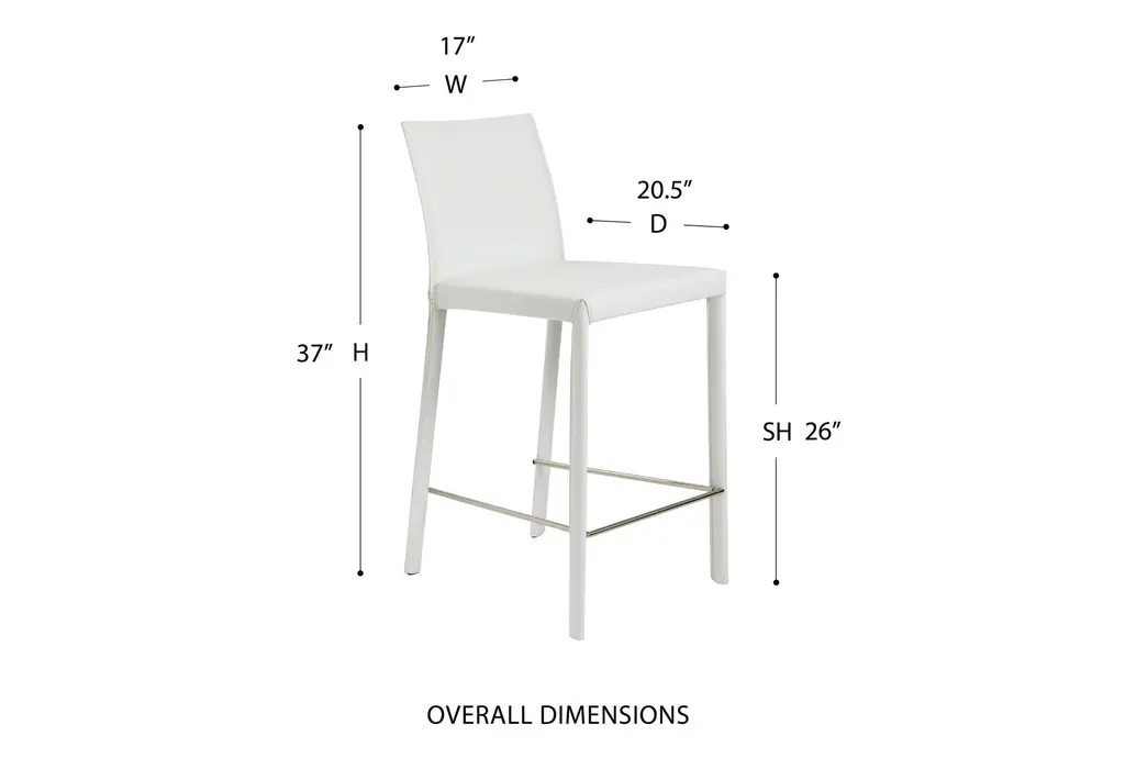 Enhance your dining or kitchen area with the Parson White Faux Leather Upholstered 26" Counter Stool Set Of 2 with Back. These contemporary stools feature a sleek, armless design that fits seamlessly into any modern space. The white faux leather upholstery provides a clean and sophisticated look, while the cushioned seat ensures comfort during meals and gatherings.