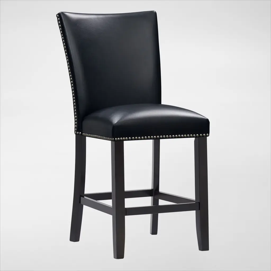 This sturdy counter stool features a tubular steel frame completely covered in terra-colored leather and a black, embossed footrest. Black technical fabric covers the metal seat pan. Its barely-there profile is made up of sleek geometric lines at right angles. Additional colors and finishings are available. Price quoted upon order.