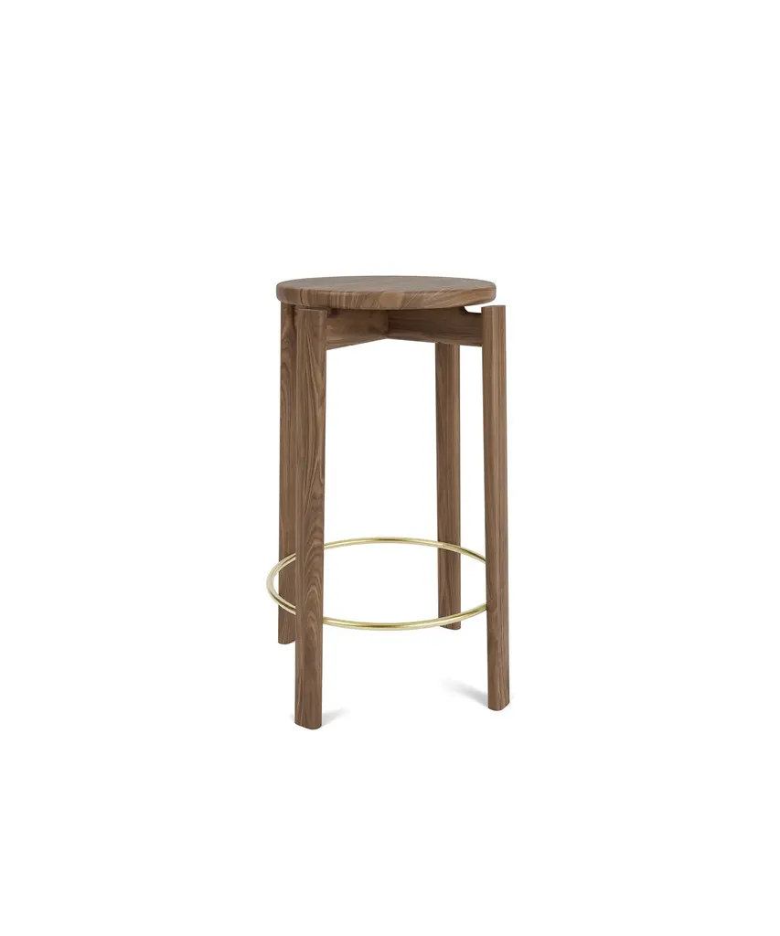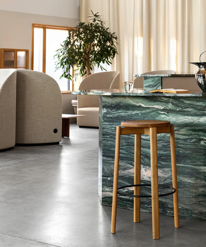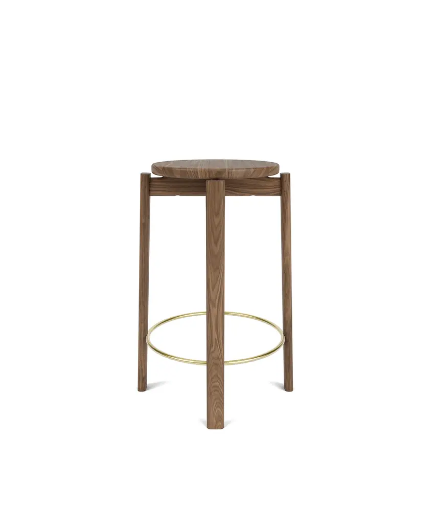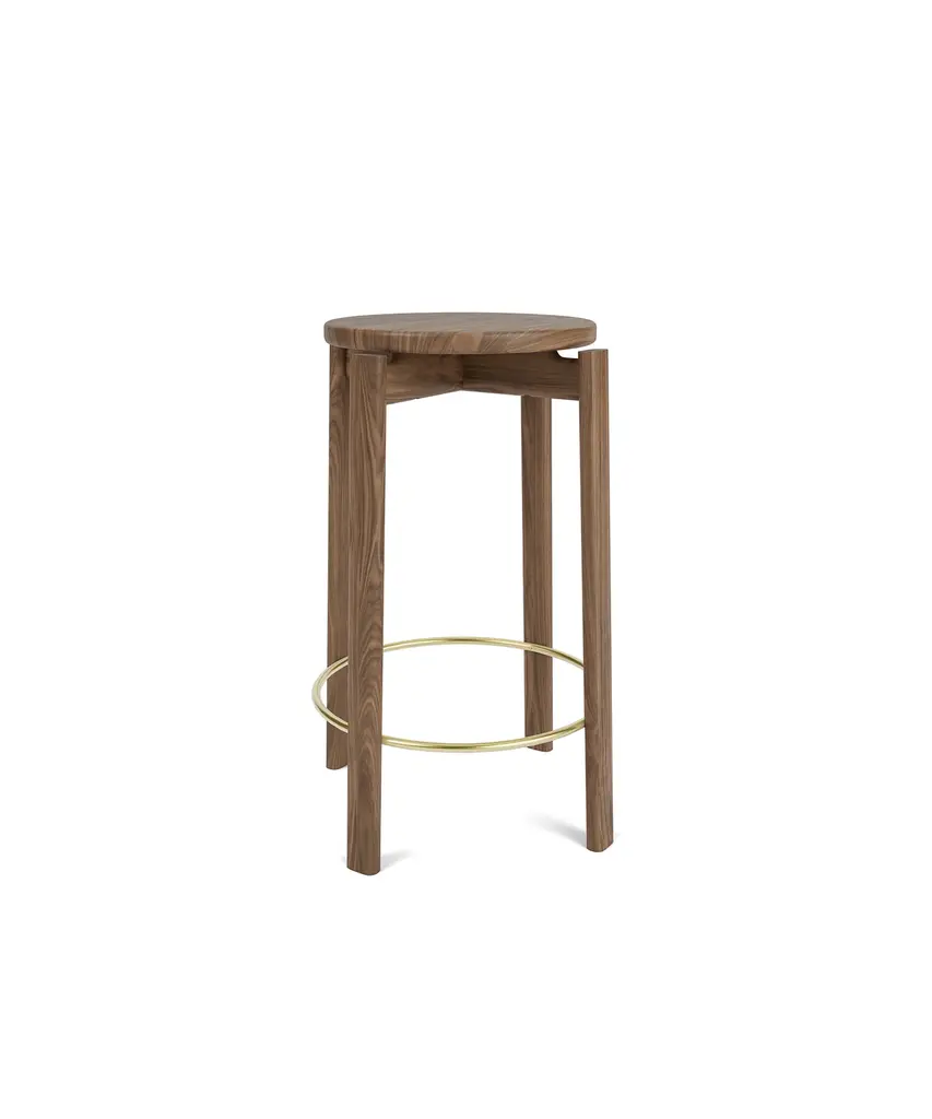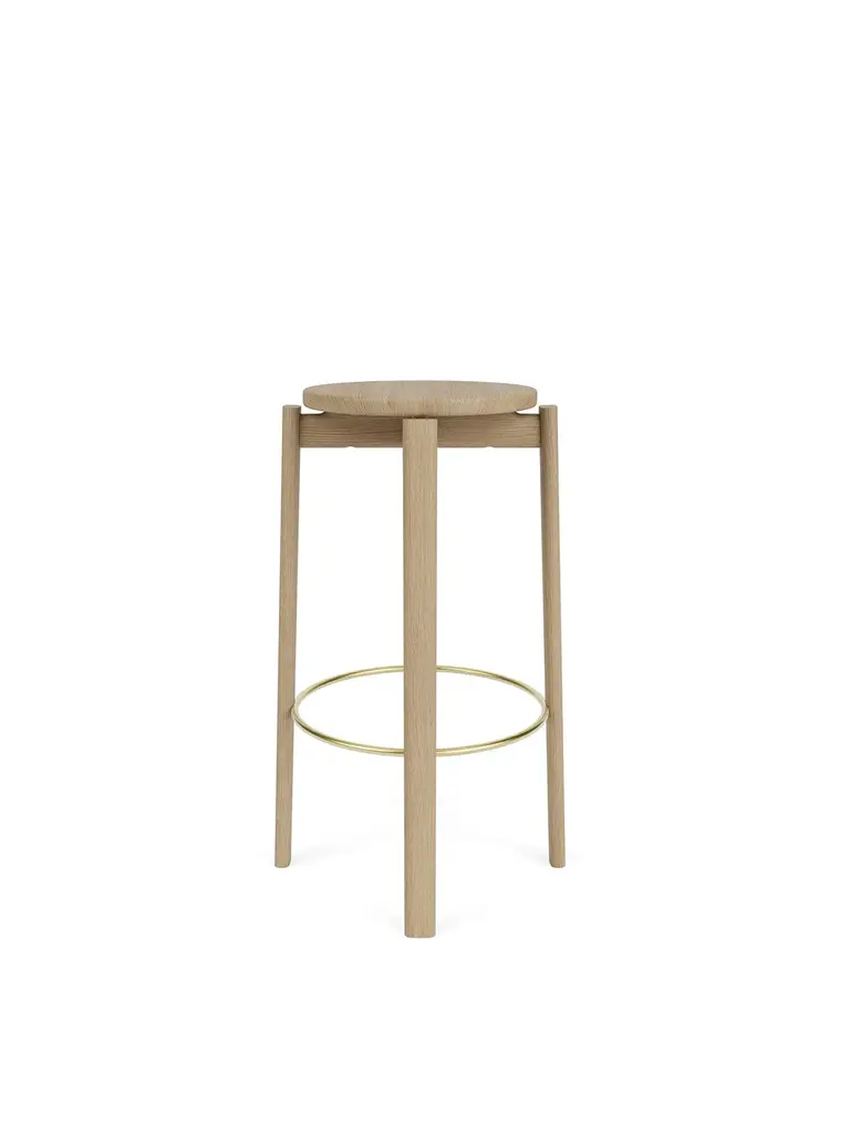 The Passage Collection takes its cues from Danish cabinetmaking traditions, devoted to woodworking skills using age-old techniques. Made in solid oak, the Passage Counter Stool is given a modern edge thanks to its clever flat-pack construction – reducing its footprint and allowing its owner to actively engage in the crafting process. Offered in a natural or dark lacquered finish, the warm expression and organic silhouette of the stool invite touch. A carefully placed foot ring ensures a comfortable sitting position for prolonged periods and its bar height aligns perfectly with countertops, making the versatile design the ideal blend of function and comfort. Designed by Kroyer-Saetter-Lassen for Danish design company Audo Copenhagen.