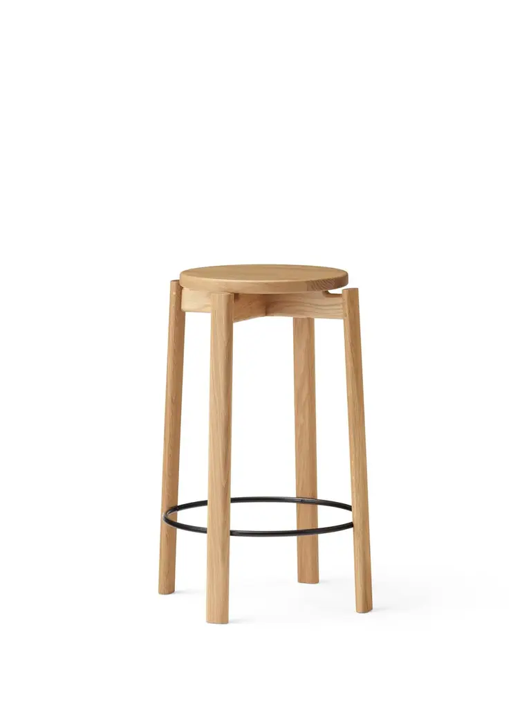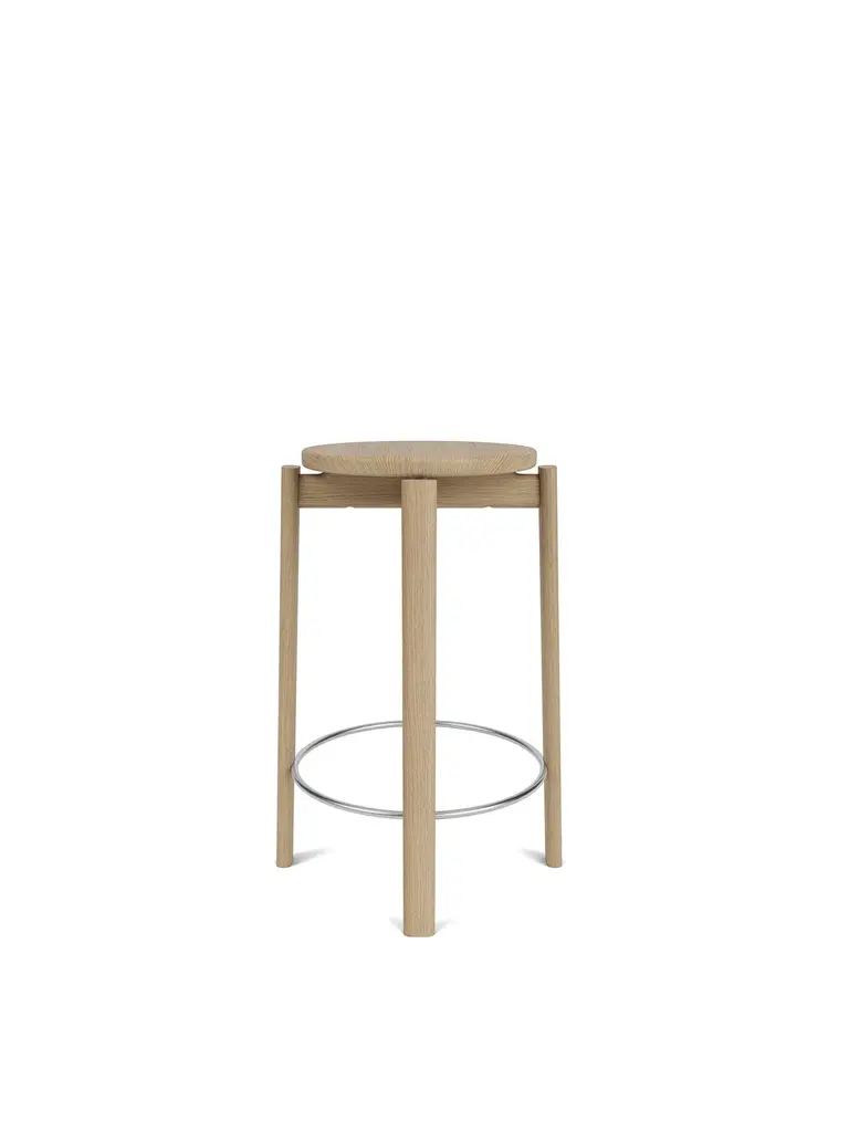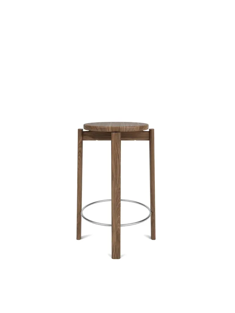 Looking to time-honored Danish cabinetmaking traditions, the Passage Counter Stool in walnut or natural oak showcases modern design and woodworking through traditional techniques. Crafted from solid walnut or FSC™-certified solid oak with a lacquered finish, the rich colors and luxurious grain pattern inherent to the high-quality hardwood ensure an enduring aesthetic. Thoughtfully designed, a brushed brass or black foot ring ensures a comfortable seating experience for extended periods, while the stool's counter height aligns seamlessly with kitchens, bars and other communal spaces, making it a versatile design that effortlessly blends functionality with comfort. Its ingenious flat-pack construction encourages active participation in the assembly process.