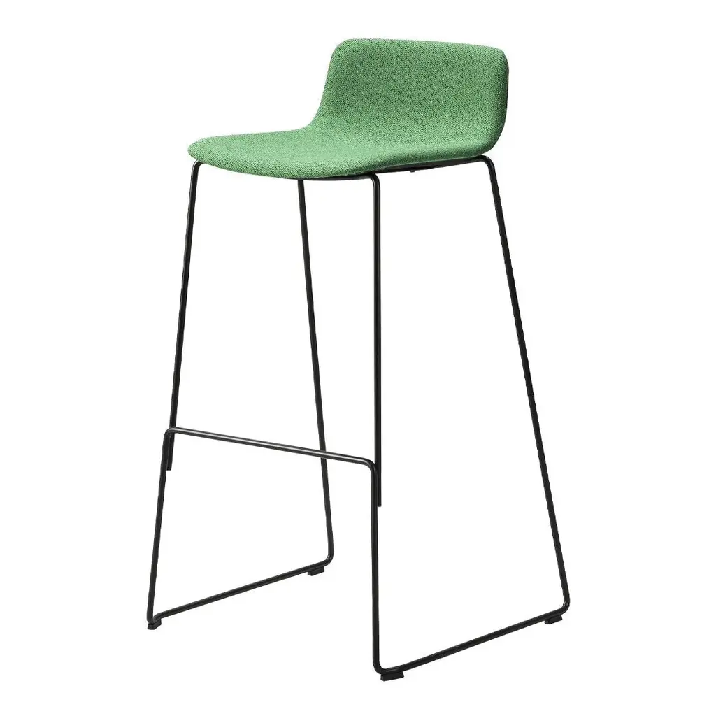 Pato Stool has been designed to continue the visual expression and unparalleled craftsmanship of the Pato Chair in a typical backless barstool. As with the Pato Chair, Pato Stool is designed be both discrete and comfortable, with a distinct yet unpresuming aesthetic language. With a smaller seat and a lower back, the Pato Stool fits any environment from bars and restaurants, to workspaces and private kitchens. The Pato Stool seat is made in the same high-rate polypropylene as the original Pato Series. The silky touch and resilient surface is suitable for outdoor as well as indoor use. Pato Stool is also available with upholstery that further enhances the comfort of the chair and opens for various visual expressions. The sledge version of the stool is stackable and comes in both bar and kitchen counter height. Stackable: 12 pcs. On Floor