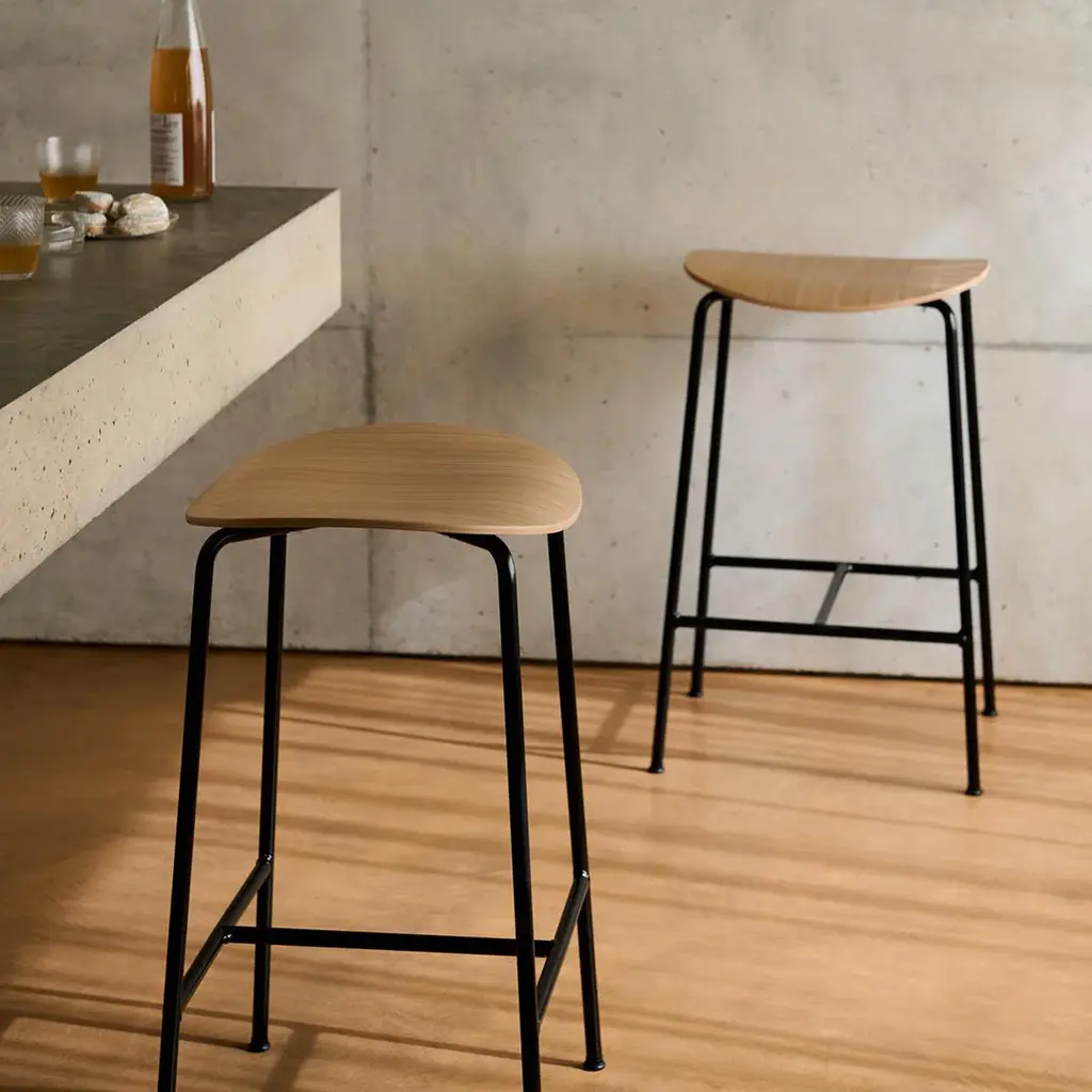 Designed with the same meticulous attention to detail as the wider Pavilion collection, the counter stool maintains the series' signature airy quality while offering versatile seating solutions for a variety of environments. Adapting features from the very first design, the counter stool revolves around the same bent veneer seat in either lacquered oak, black lacquered oak or lacquered walnut.