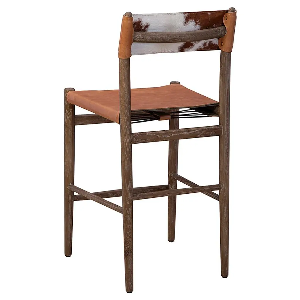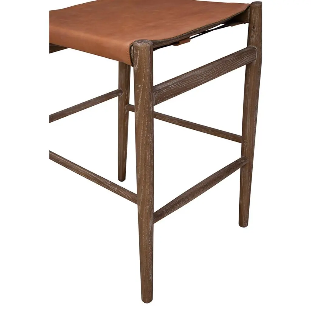 Penny Rustic Lodge Leather Brown Oak Counter Stool