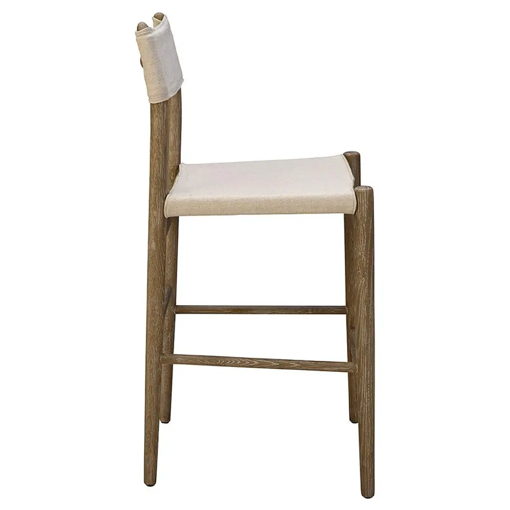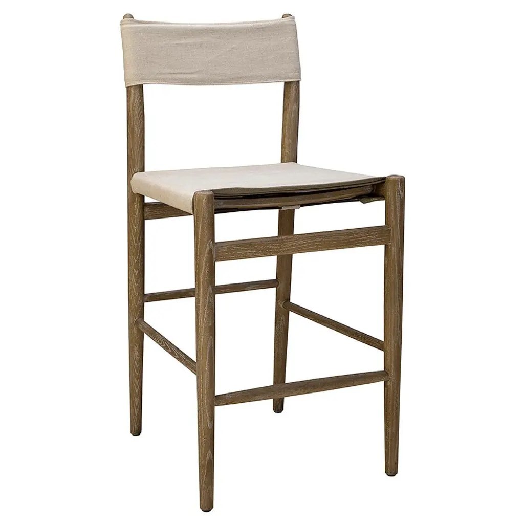 Penny Rustic Lodge Linen Brown Oak Counter Stool