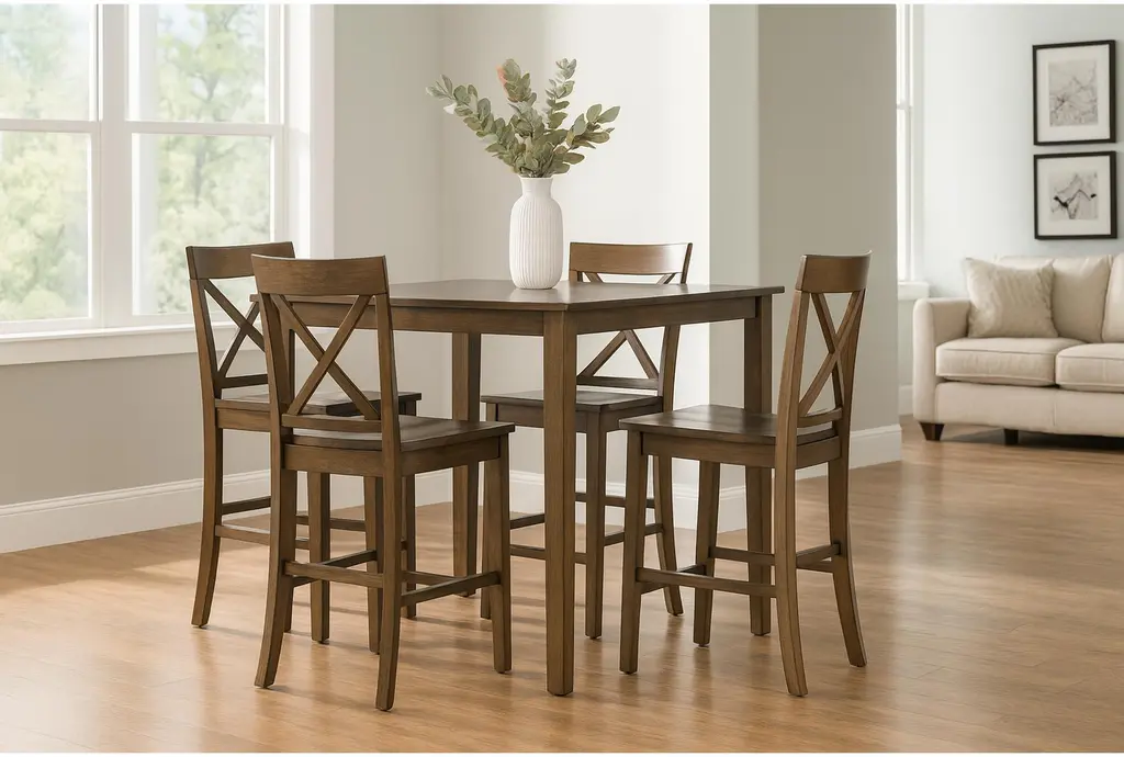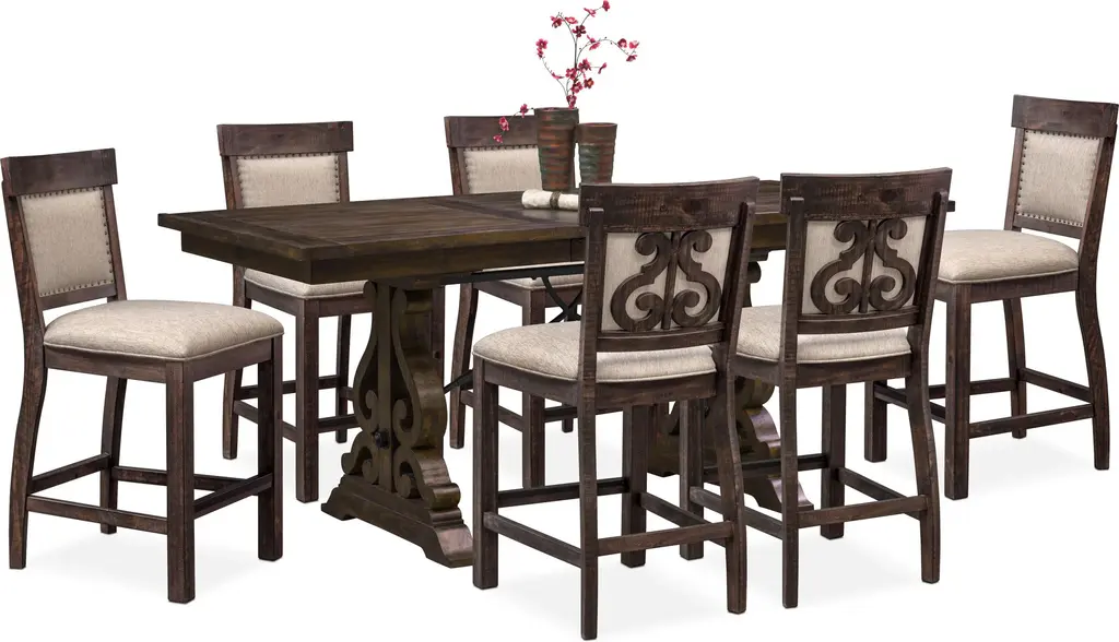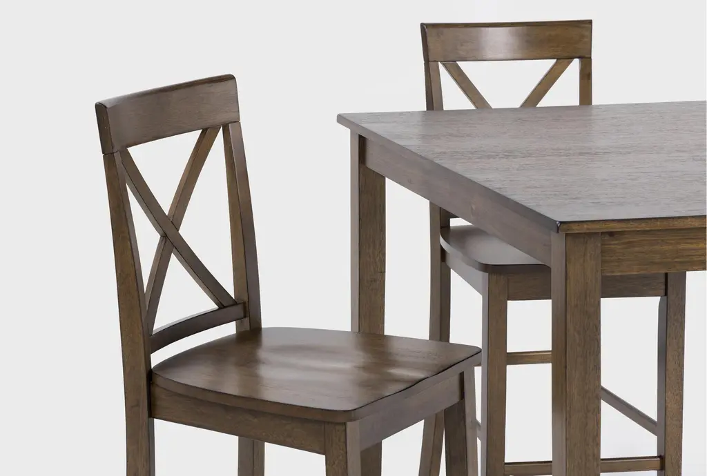 Those charming x-back stools, that clean, streamlined kitchen table, the beyond phenomenal value - it's no wonder this set is so popular. In addition to the immediately discernible perks, our Percy counter height set raises the bar for entertaining. The hardwood and veneer pieces also boast a versatile finish, which enriches their appeal and complements every meal.