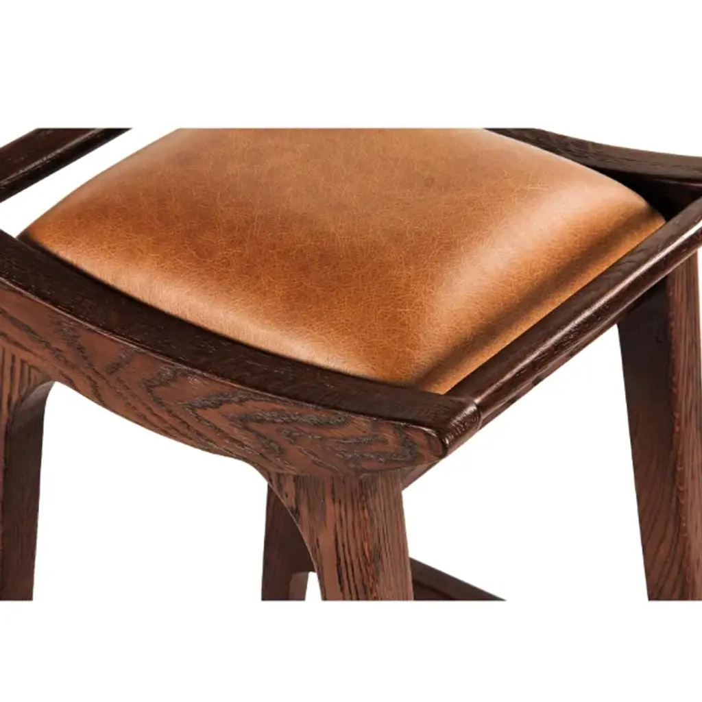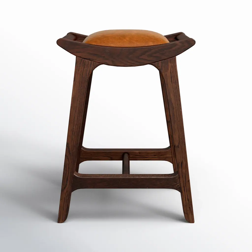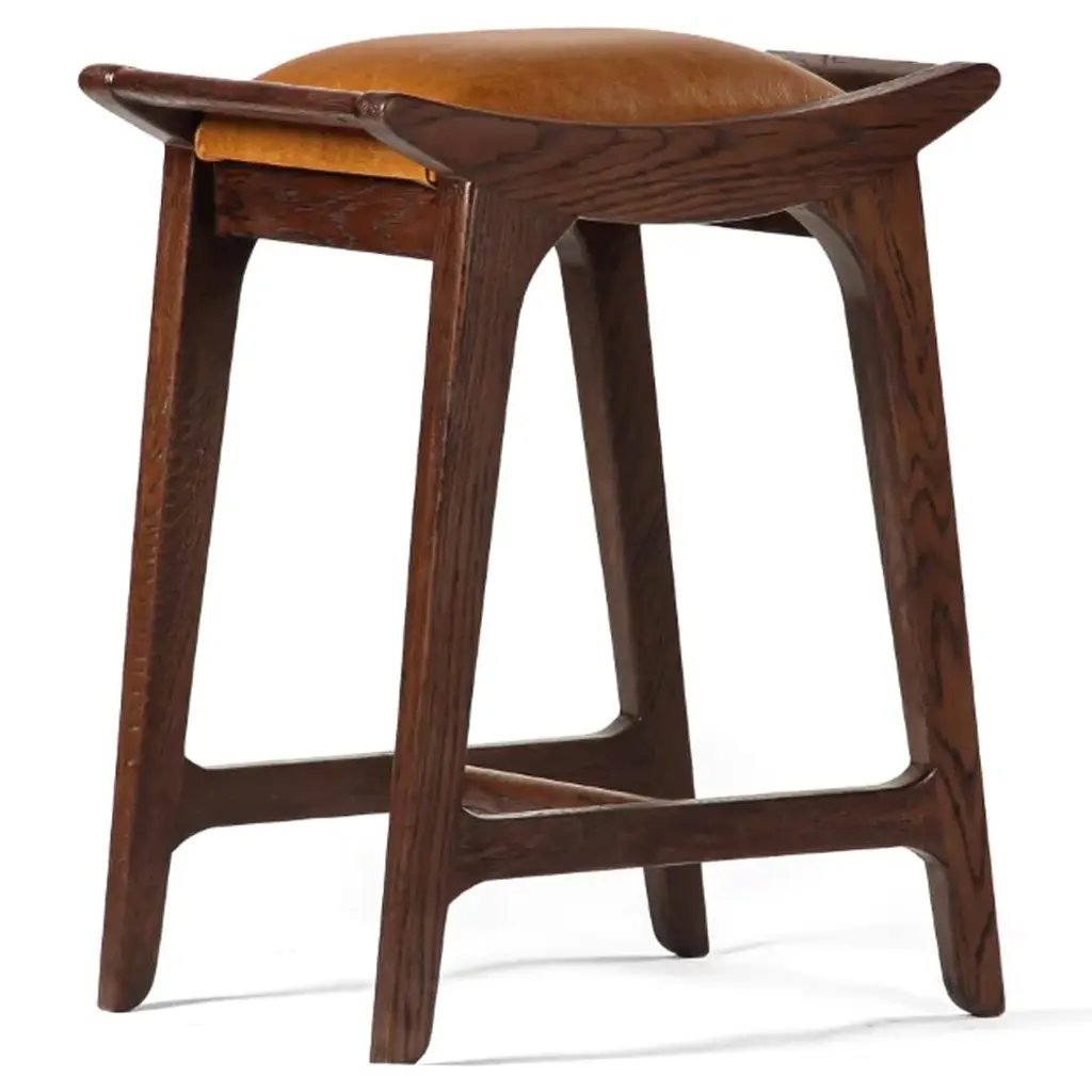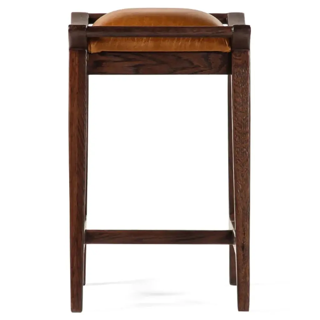Perrin Rustic Lodge Brown Leather Oak Wood Backless Counter Stool
