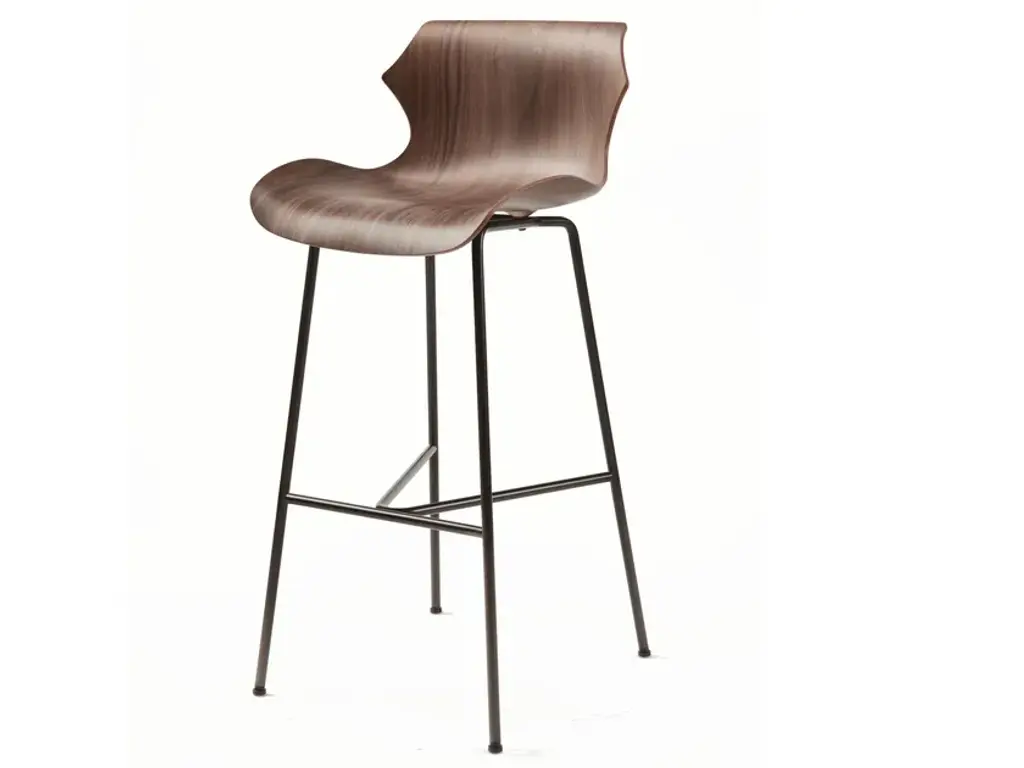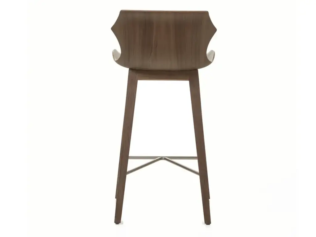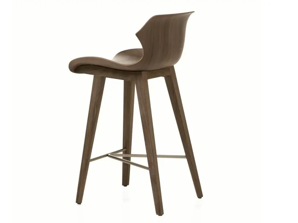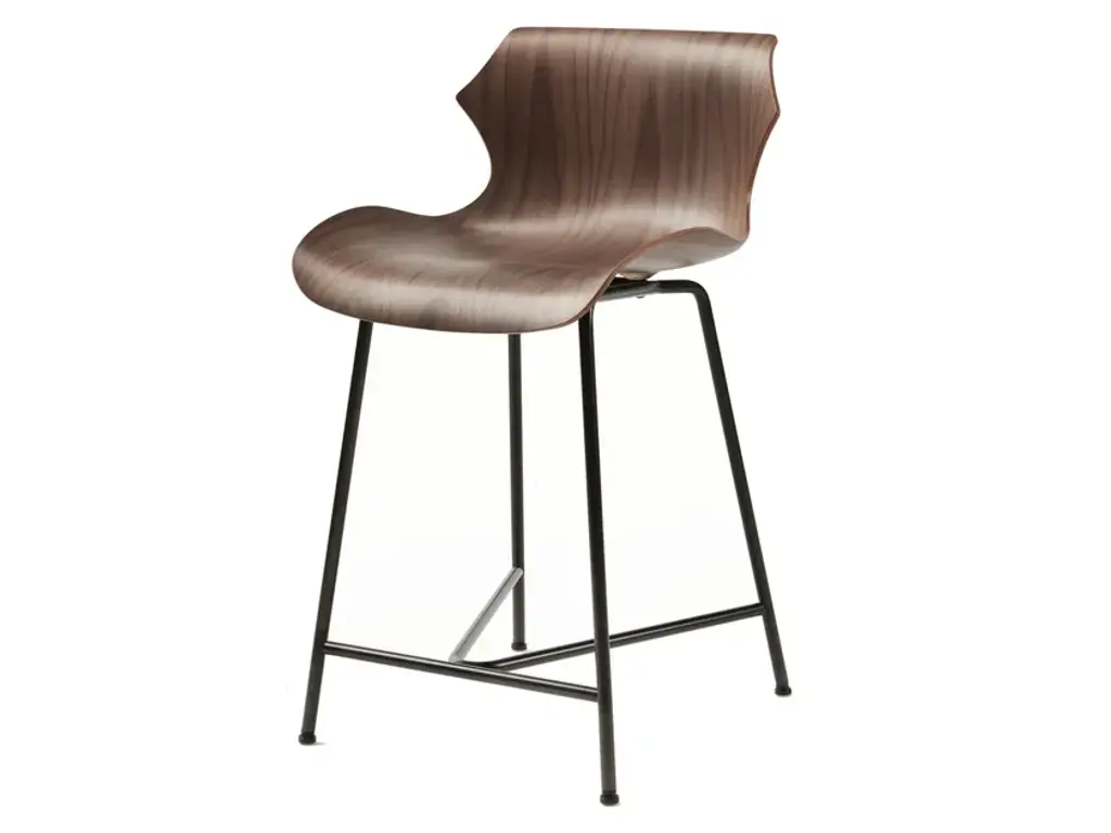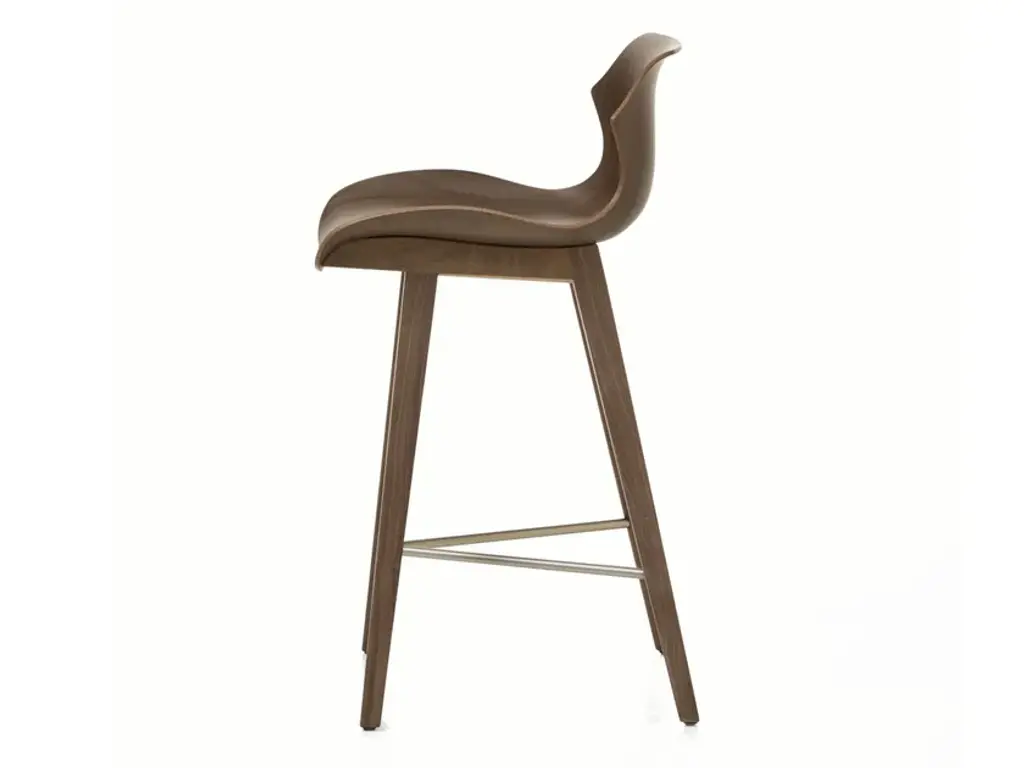 The Petal Stool is an all wood stool consisting of a 3D molded wood veneer shell with a carved, solid wood base. Materials: Shell in 3D White Oak or Walnut veneer. Base in carved solid White Oak or Walnut. Footrest in solid stainless steel rod.The BassamFellows Petal chair is the most advanced 3D molded wood veneer chair ever put into commercial production. It takes some of its inspiration from Saarinen’s Tulip chair, and also offers a dialogue with the history of the Eames experiments. The Petal chair is state of the art and environmentally friendly, but the industrial nature of the process behind it, and its economic use of materials, makes for a democratic price point. It sits neatly alongside other bent plywood chairs in terms of function and aesthetic, but has a notably more expressive form. The super-shaped wood mimics the unfolding of flower petals, creating a comfortable ergonomic form. The back is wider at its top to provide support, while rolled waterfalls of shaped wood soften the edges. Nature frequently offers the perfect mood board for comfort in design. Petal’s appeal is accentuated by the visual grain of the wood, which resembles the fine detail on a flower – the lines emanating outwards in the direction of a bloom. It’s fitting that the Petal shell is pressed at Davidson Plyforms in Grand Rapids, MI in the USA –the same company that has been pressing the Eames’ molded plywood chairs for decades. It draws a line back to the 1940s, but also represents a significant development for 21st century design. 20 years ago, CNC carving was in its infancy. The ergonomic and organic BassamFellows Tractor stool – which debuted in Milan in 2003 – was only made possible through use of that technology. Today, it is standard. The Petal is similarly ergonomic and organic-looking, but pushes the boundaries of what’s possible with molding: despite advances in 3D tech, the curvature of the rump of the shell, the waterfall edges and the shape of the arms are all extraordinarily difficult to achieve. But as the Eames’ experiments in the 1940s, technology exists to be developed more than it does to curb ambition. It is constantly being shaped.