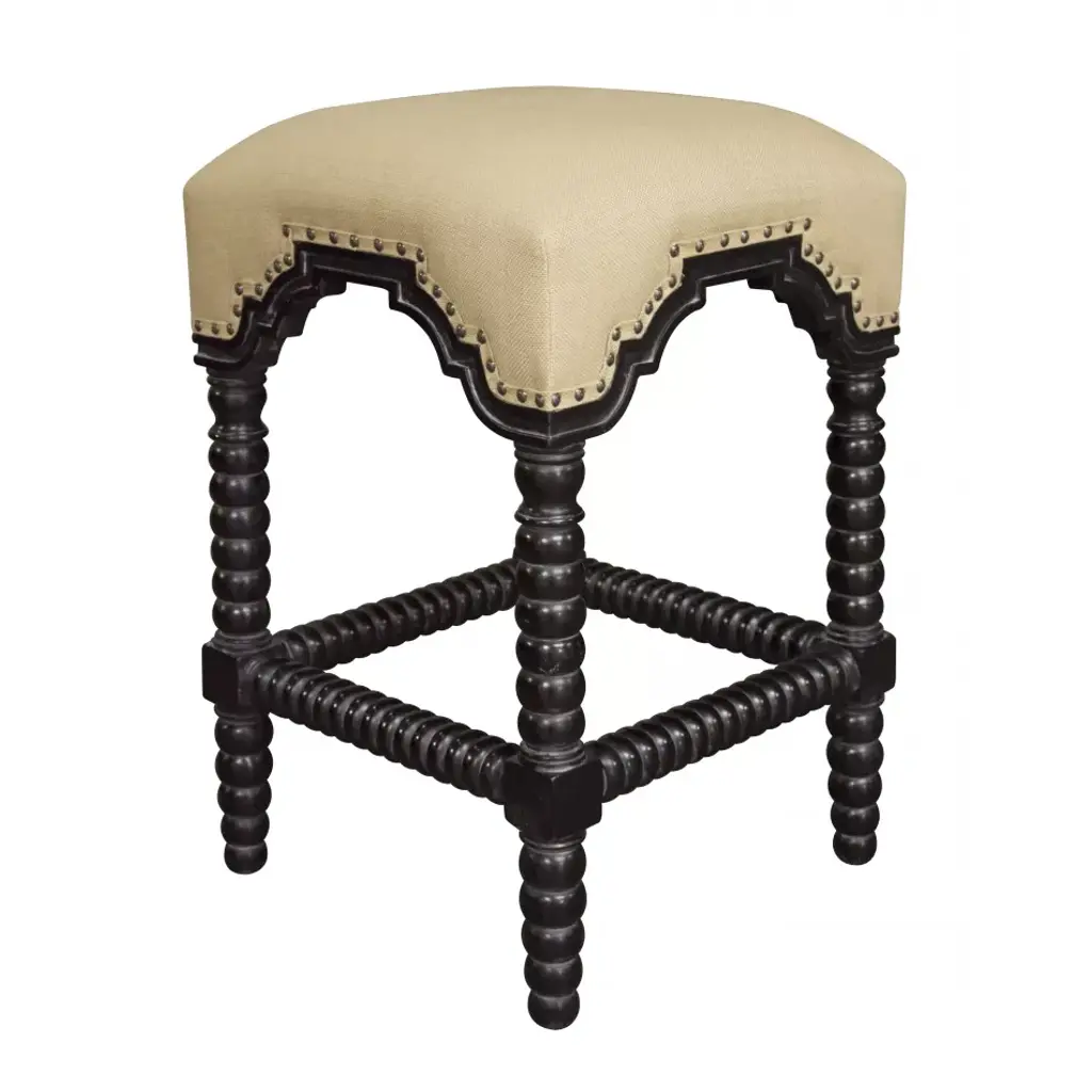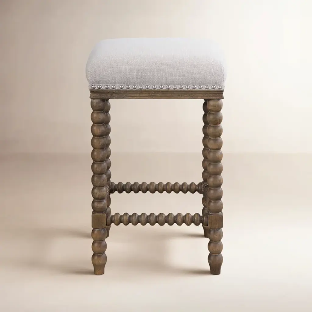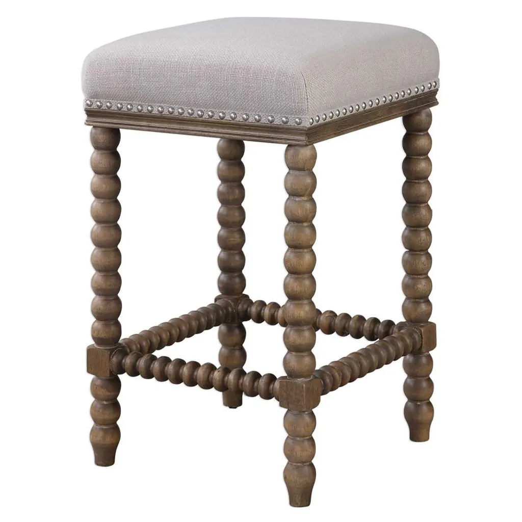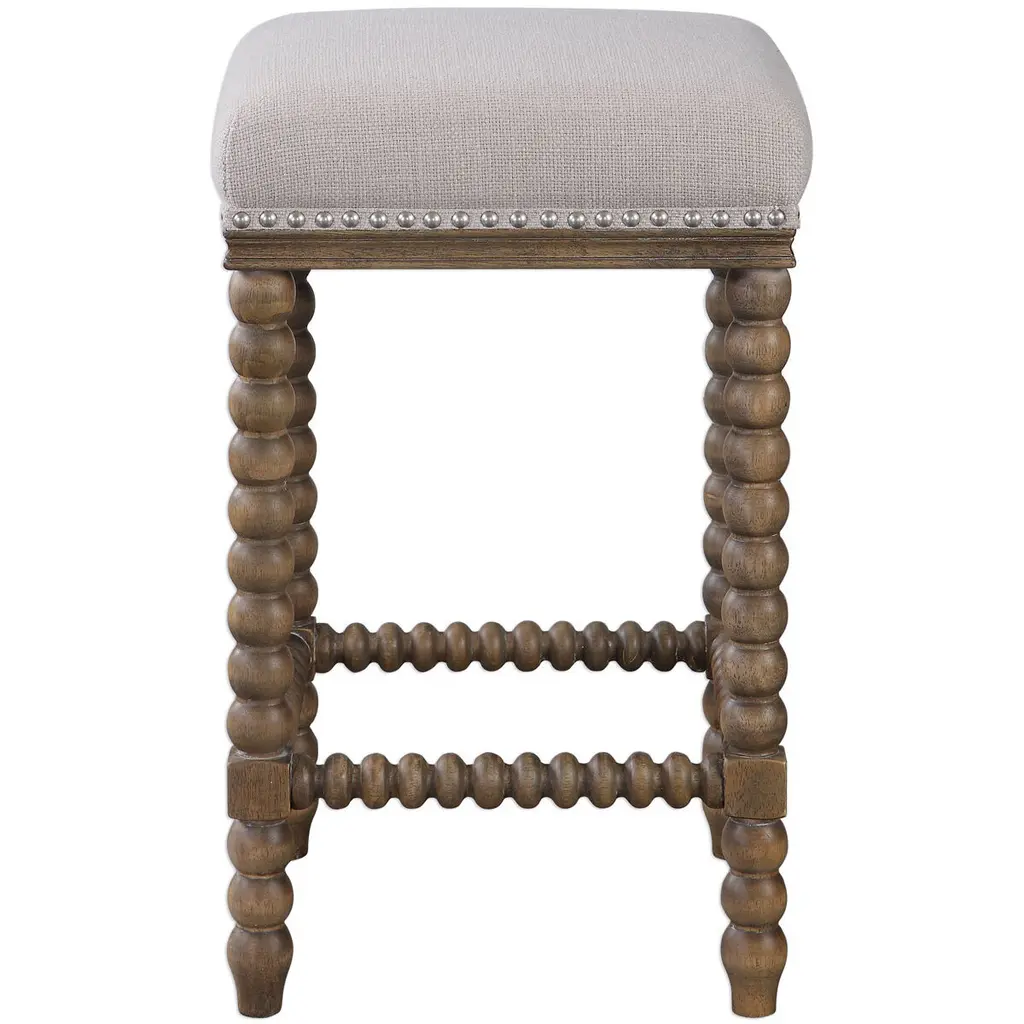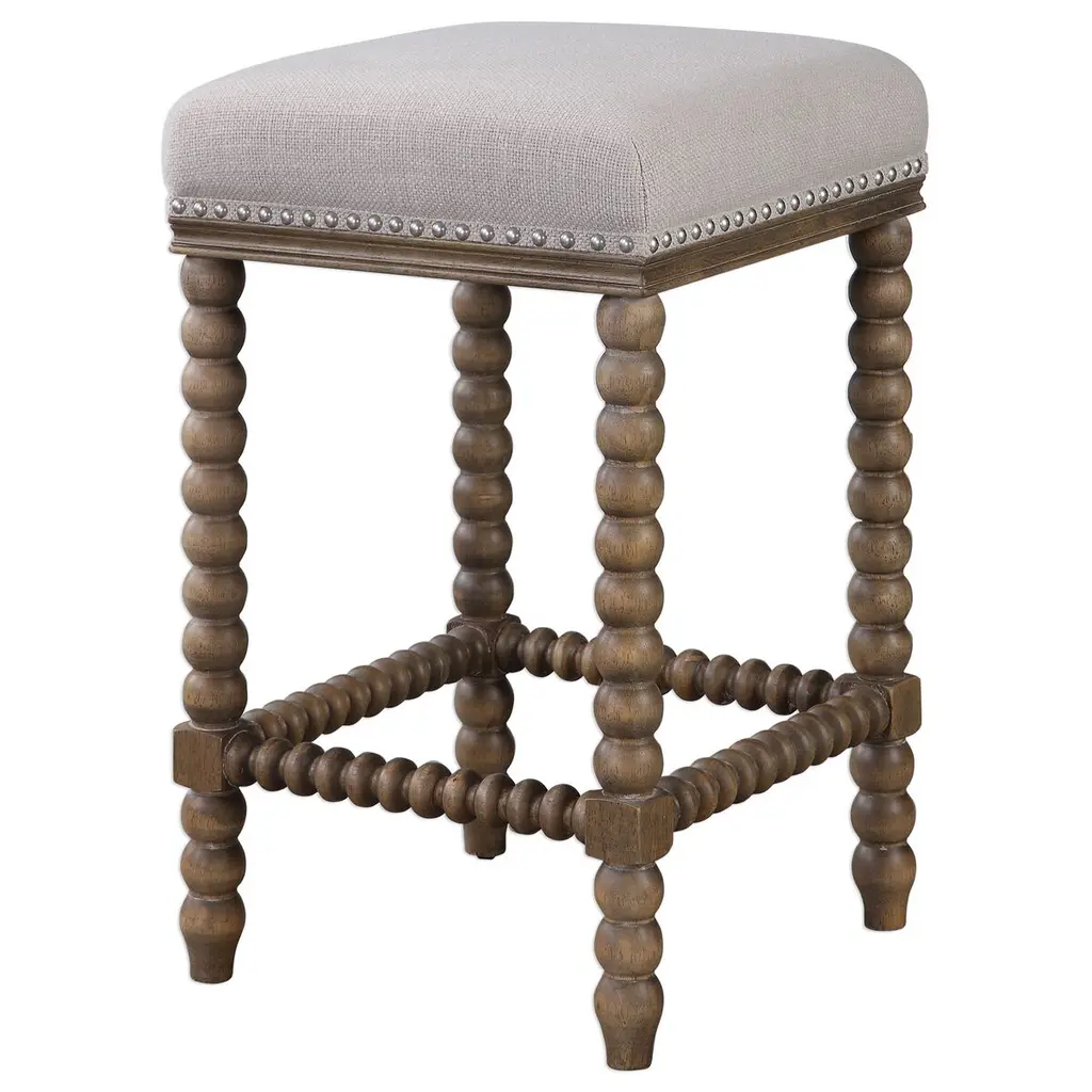 Peter French Country Beige Performance Brown Wood Spindle Counter Stool