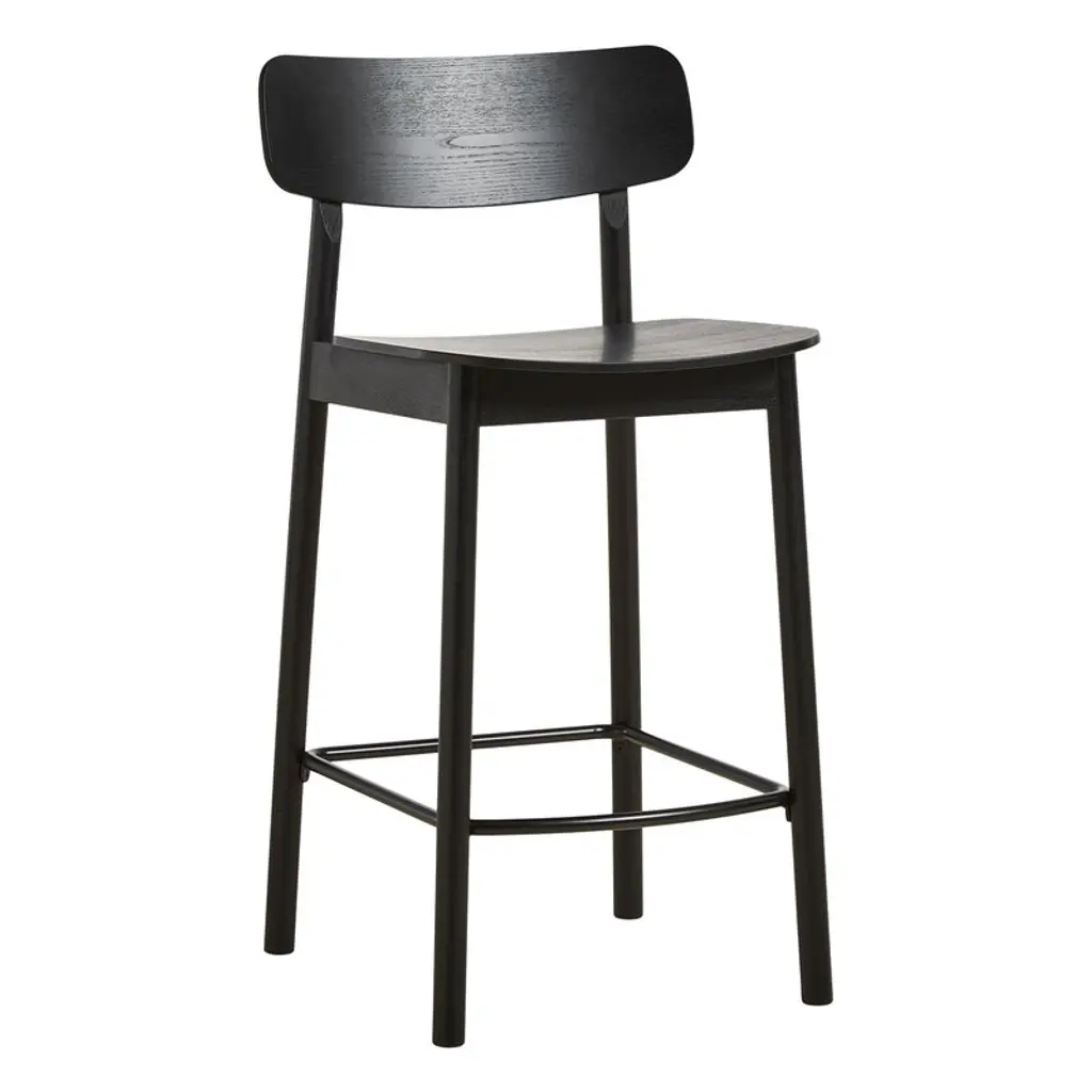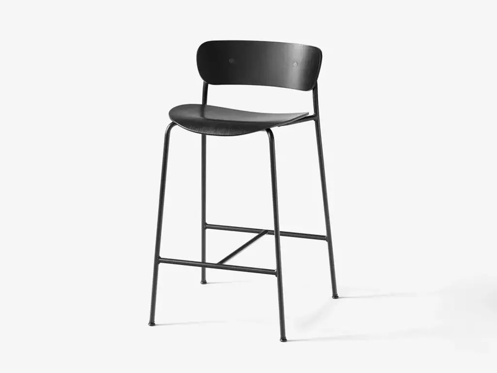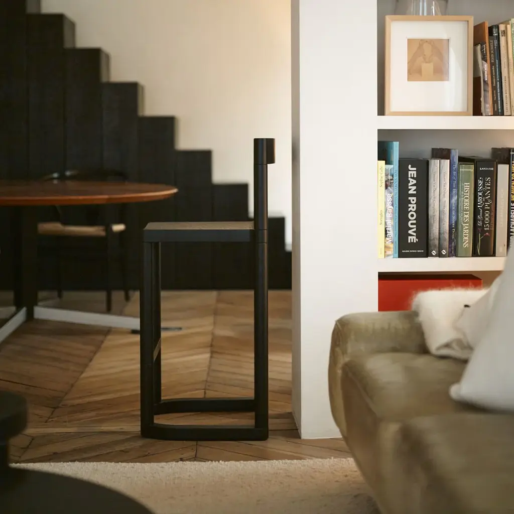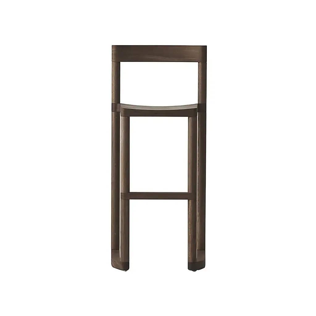 Resident's bar and counter Pier offshoot takes the signature cylindrical structure one step further with a continuous sled base that makes it stackable—a unique feature not often seen in a high stool. Made entirely from solid oak, the seating employs only mortise and tenon joints that allow the wood fibers to run continuously throughout for sustained durability. A footrest ensures lateral bracing, all contributing to the beautiful economy of its functional silhouette in French designer Léonard Kadid's debut project for the New Zealand brand.