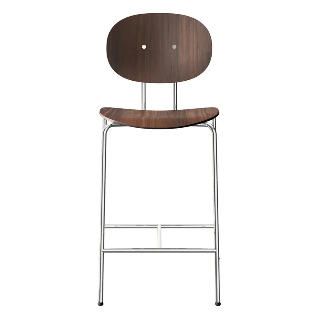 The Piet Hein counter stool from Sibast was named after its designer: Danish designer Piet Hein developed the chair for almost a decade, completing it in 1968. However, it took more than 50 years before the chair was finally taken into production by Sibast Furniture. The design of the Piet Hein counter stool revolves around a superellipse – an elliptical form named by Hein himself, which he first used in the famous roundabout on Sergels Torg in Stockholm. Hein was, in fact, a polymath, whose career ranged from mathematics and architecture to poetry. He later utilized the harmonious elliptical shape in many other works, such as in the seat and back of the Piet Hein chairs. The seat material of the Piet Hein counter stool is bent wood veneer, and the dynamically positioned, slightly sloping legs are made of steel. Thanks to the slender yet sturdy design, the Piet Hein stools are well suited for both home and restaurant use.