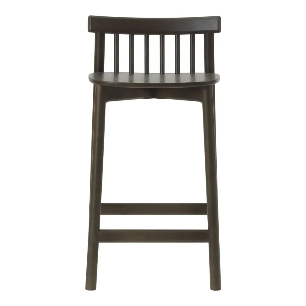 The Pind chair collection is a modern interpretation of the classic shaker chairs with slatted backs, as the name "Pind" suggests. The collection consists of a dining table chair, a dining table chair with armrests and bar stools in two different heights. All the variants are made of solid ash wood with a seat of ash veneer and are available in different colors and surface treatments.