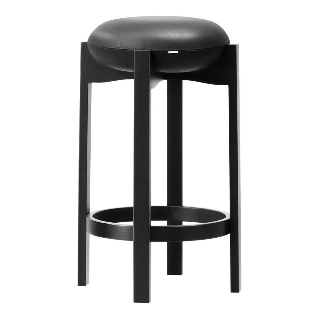 The sculptural Pioneer stools combine good seating comfort, functionality and a sculptural design language that elegantly combines the seat's soft and round design with the wooden frame's sensuality. The chair's simple, unique and distinctive combination of shapes and materials is a modern take on Scandinavian design that combines functionality with Bruun's recognisable sculptural minimalism. The four vertical legs of the wooden frame are united in a cross composition with elegant indentations, where the light, the upholstered seat cushion, is placed on top. In contrast, the detailed indentation on the underside completes the overall artistic impression.