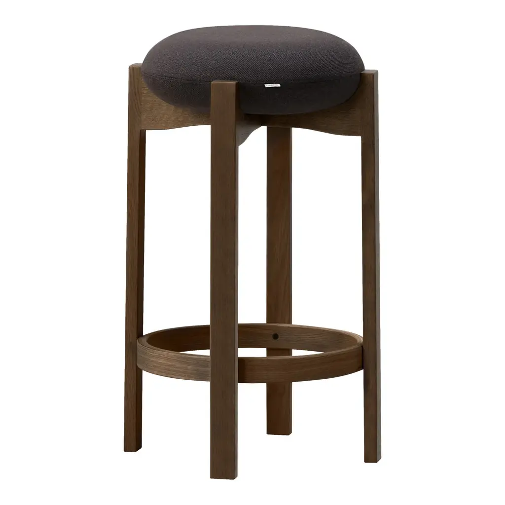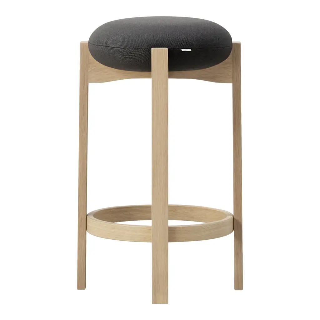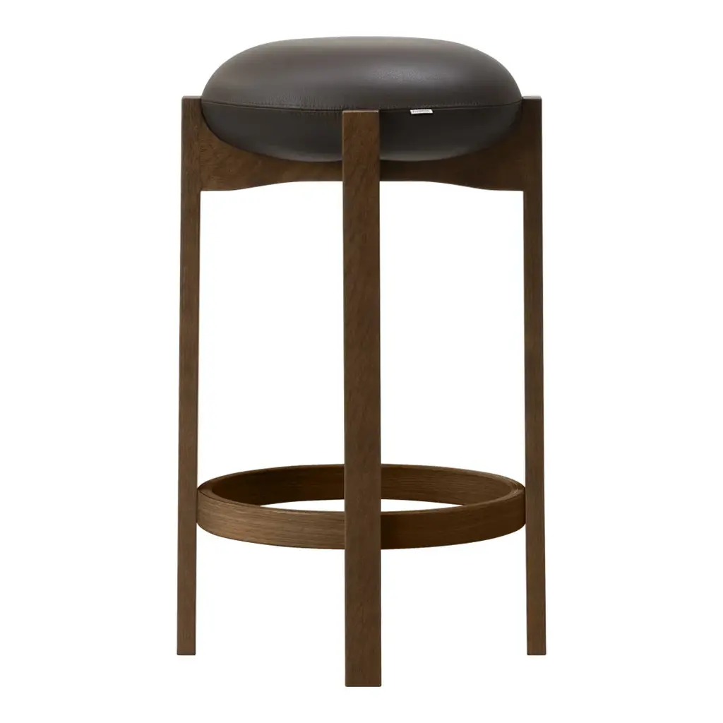 The sculptural Pioneer stools combine good seating comfort, functionality and a sculptural design language that elegantly combines the seat's soft and round design with the wooden frame's sensuality. The chair's simple, unique and distinctive combination of shapes and materials is a modern take on Scandinavian design that combines functionality with Bruun's recognisable sculptural minimalism. The four vertical legs of the wooden frame are united in a cross composition with elegant indentations, where the light, the upholstered seat cushion, is placed on top. In contrast, the detailed indentation on the underside completes the overall artistic impression.