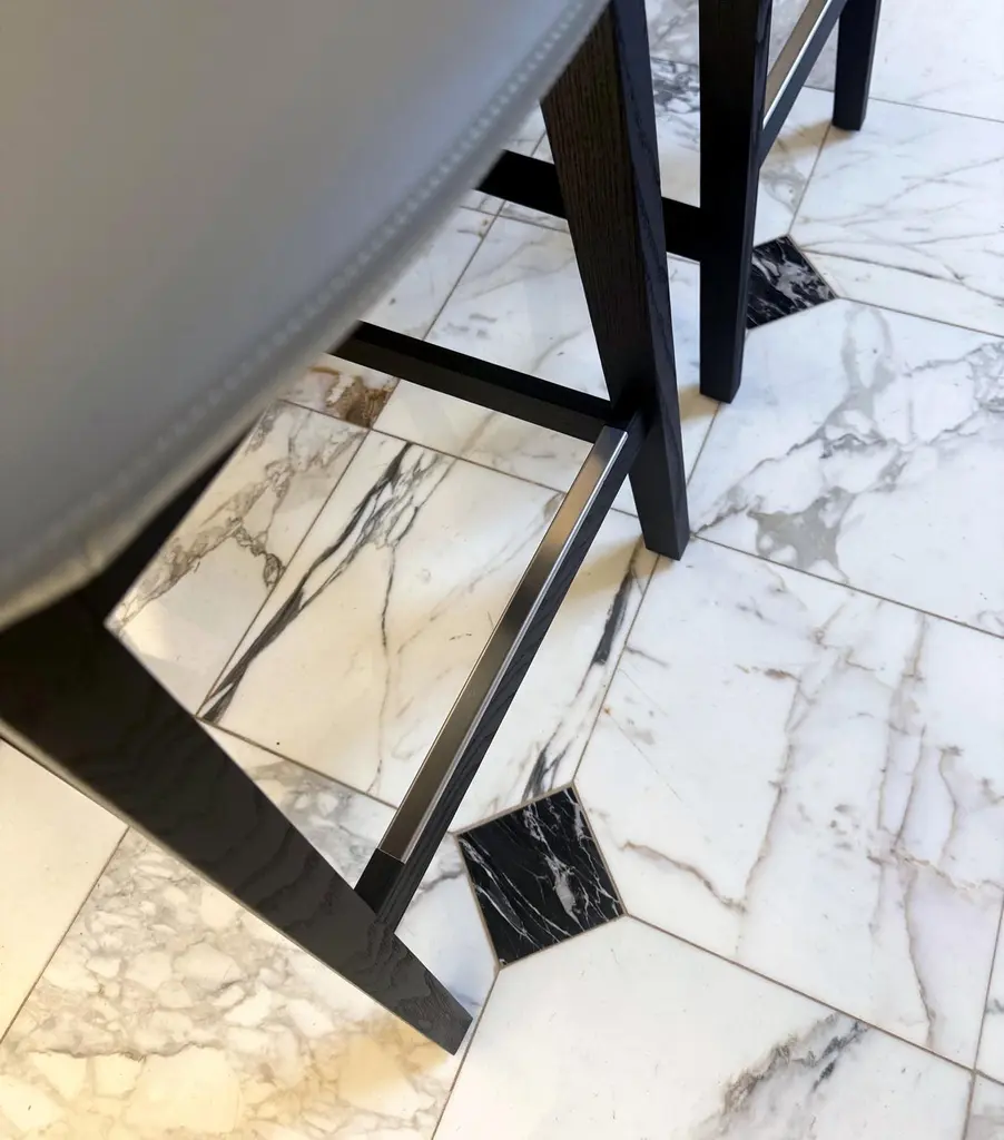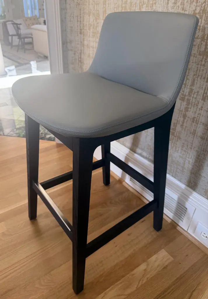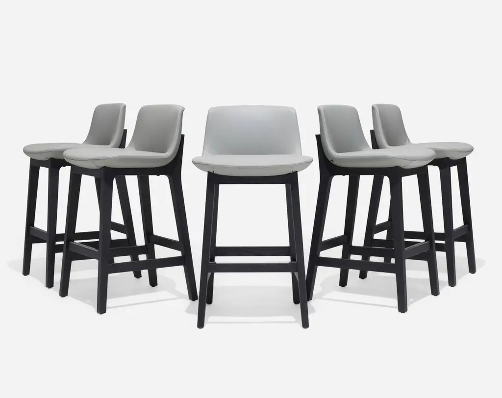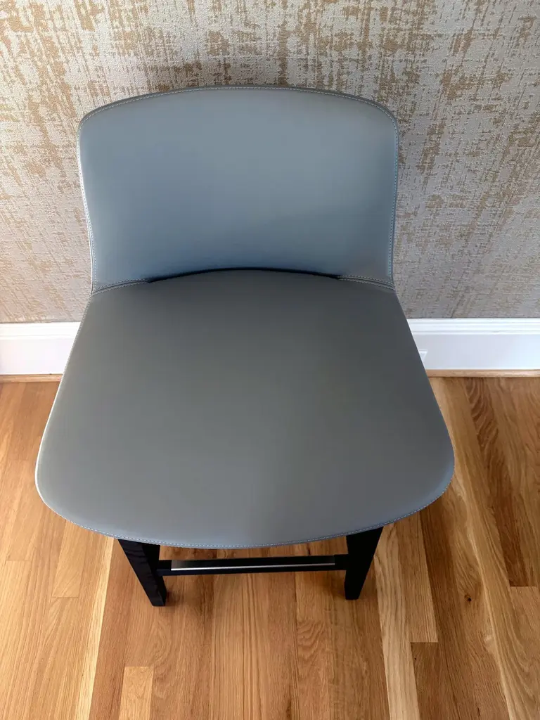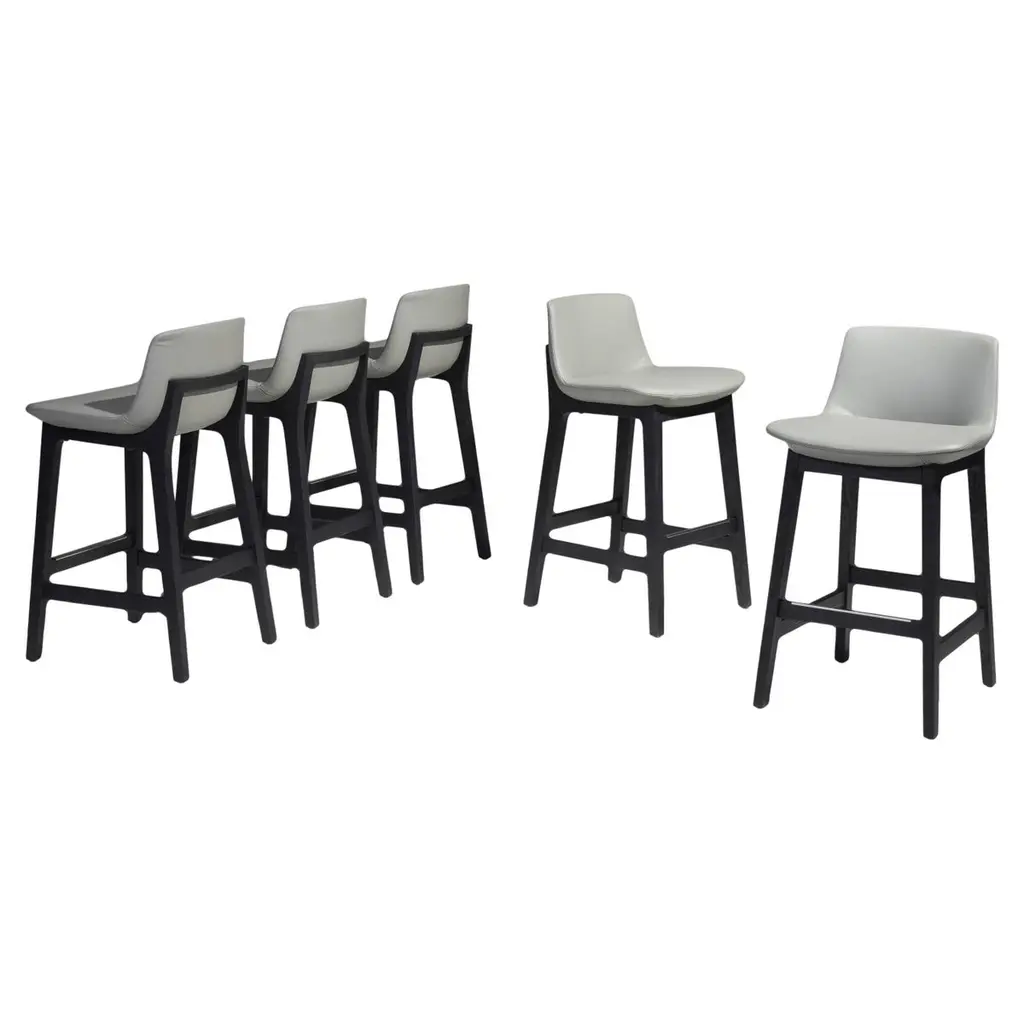 Designed by French Architect Jean-Marie Massaud (1966-) for Poliform designed in 2011, These Ventura counter stools are new production from 2020s stocks in storage and of unused near mint condition. Constructed in stained black elm wood, Gary high grade leather seats with double stitches and stainless-steel footrest, these stools are not only stylish for the most on tread kitchen, but also very comfortable for long period of seating. Each tagged and labeled underneath.The height of the seat is 25.5 for countertop/ The back is 8 inches high to ensure the comfort.The price is for a single stool, five available. The set can be purchased for 10000.