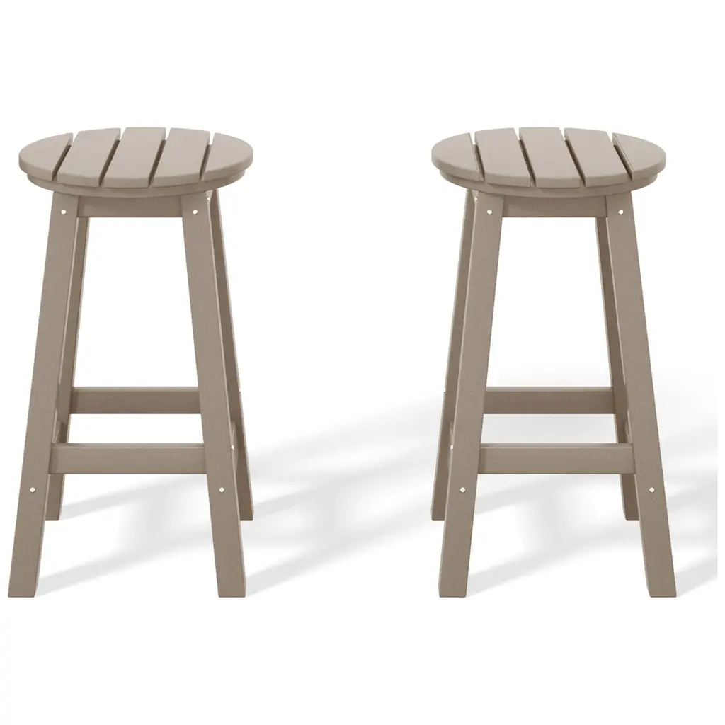 Polytrends Laguna Hdpe All Weather Outdoor Patio 24" Round Counter Stool (Set Of 2) - Weathered Wood
