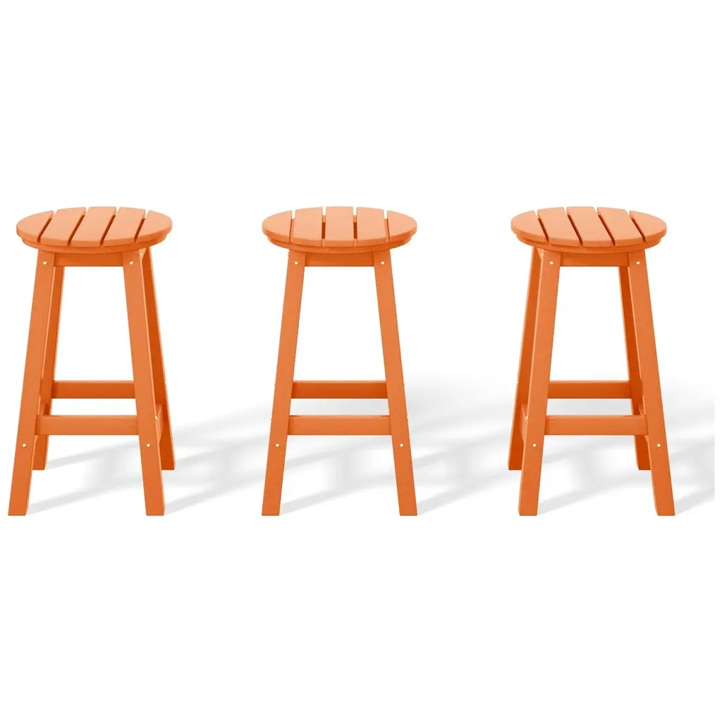 Polytrends Laguna Hdpe All Weather Outdoor Patio 24" Round Counter Stool (Set Of 3) - Orange