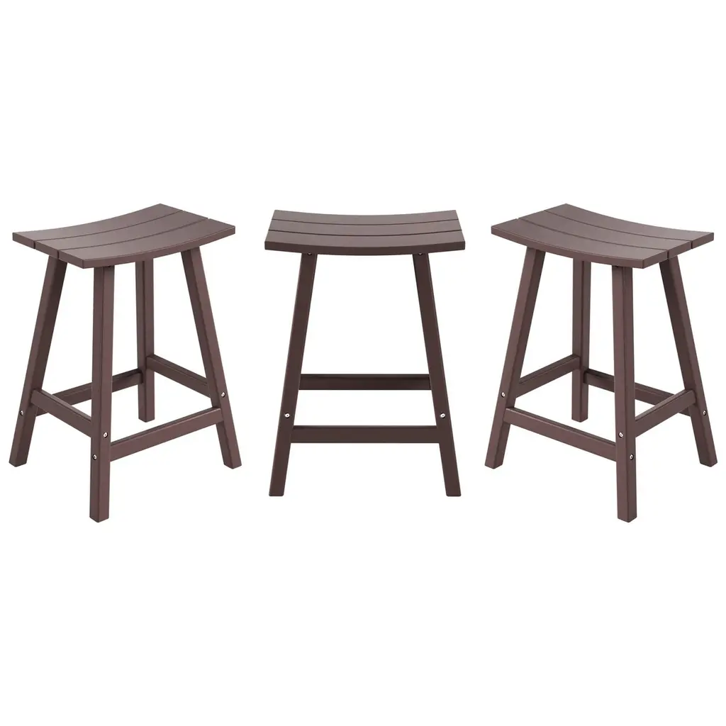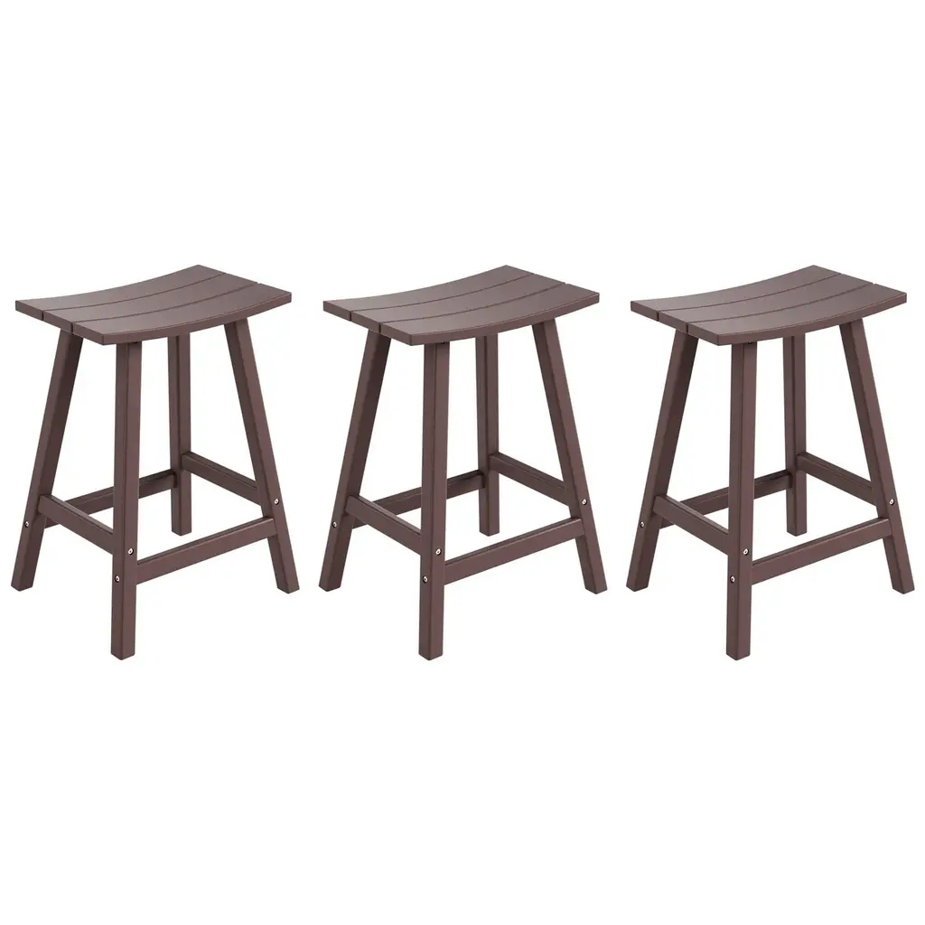 Polytrends Laguna Hdpe All Weather Outdoor Patio 24" Saddle Seat Counter Stool (Set Of 3) - Dark Brown