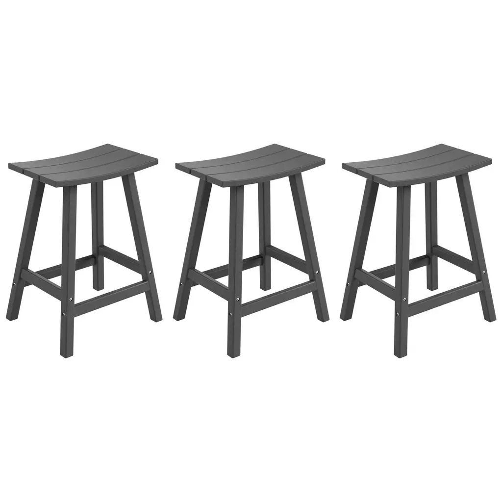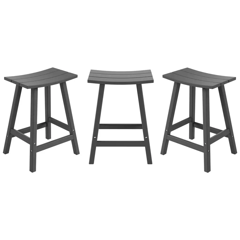 Polytrends Laguna Hdpe All Weather Outdoor Patio 24" Saddle Seat Counter Stool (Set Of 3) - Gray