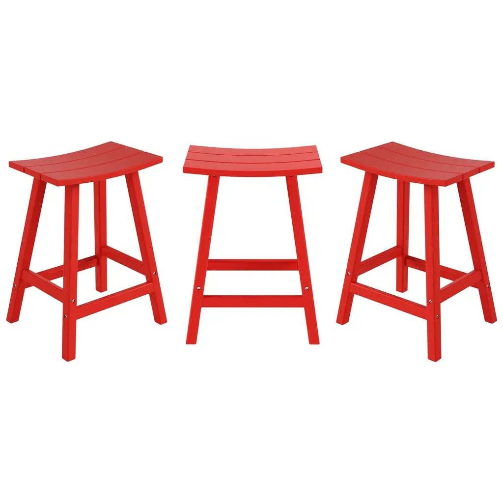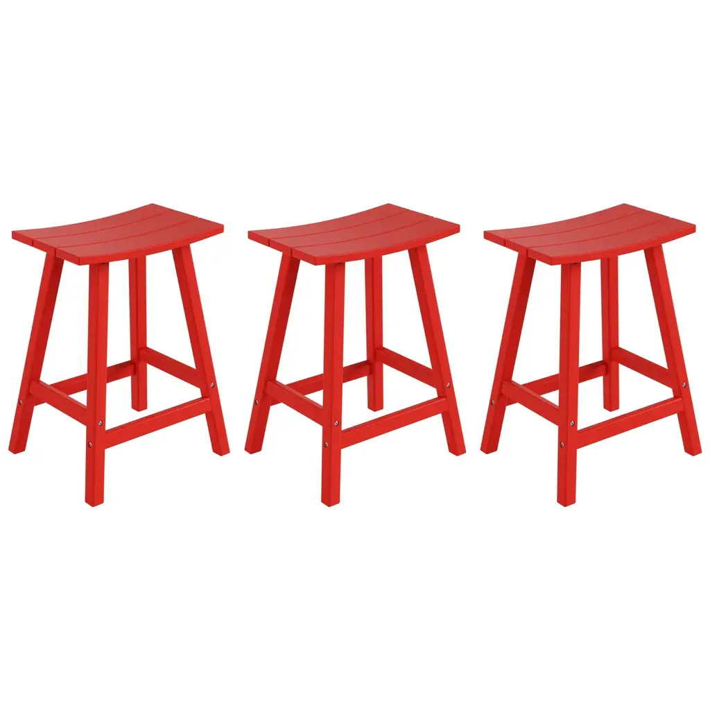 Polytrends Laguna Hdpe All Weather Outdoor Patio 24" Saddle Seat Counter Stool (Set Of 3) - Red