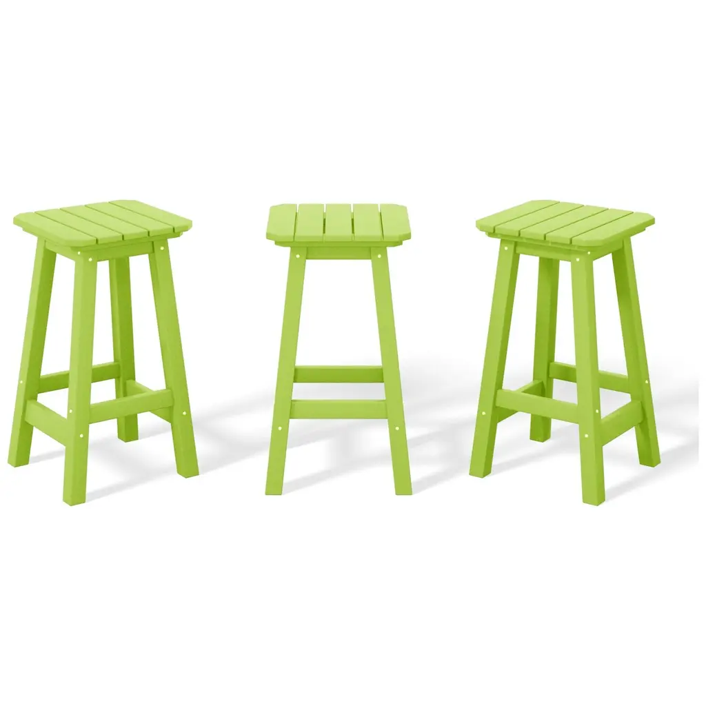 Polytrends Laguna Hdpe All Weather Outdoor Patio 24" Square Counter Stool (Set Of 3) - Lime