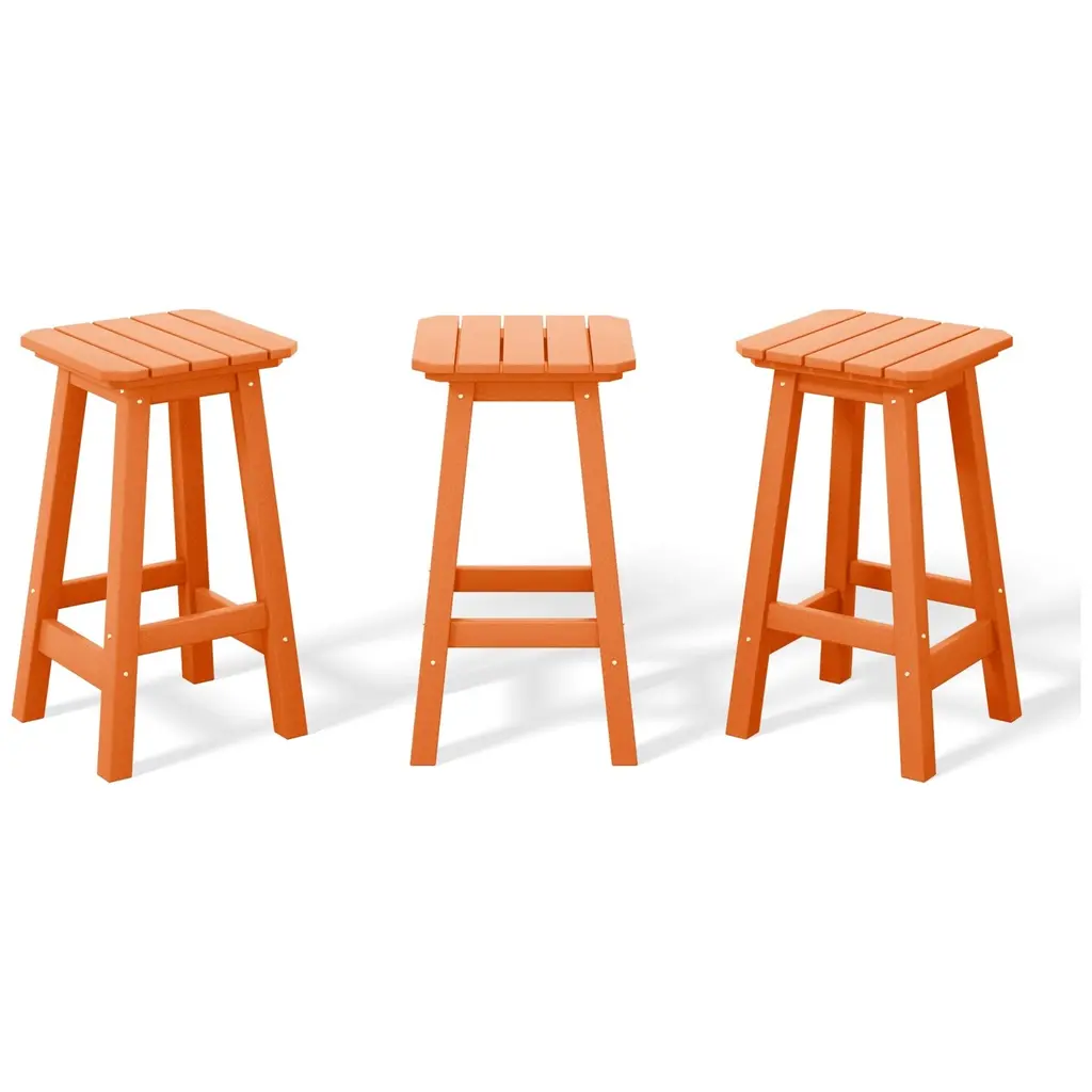 Polytrends Laguna Hdpe All Weather Outdoor Patio 24" Square Counter Stool (Set Of 3) - Orange