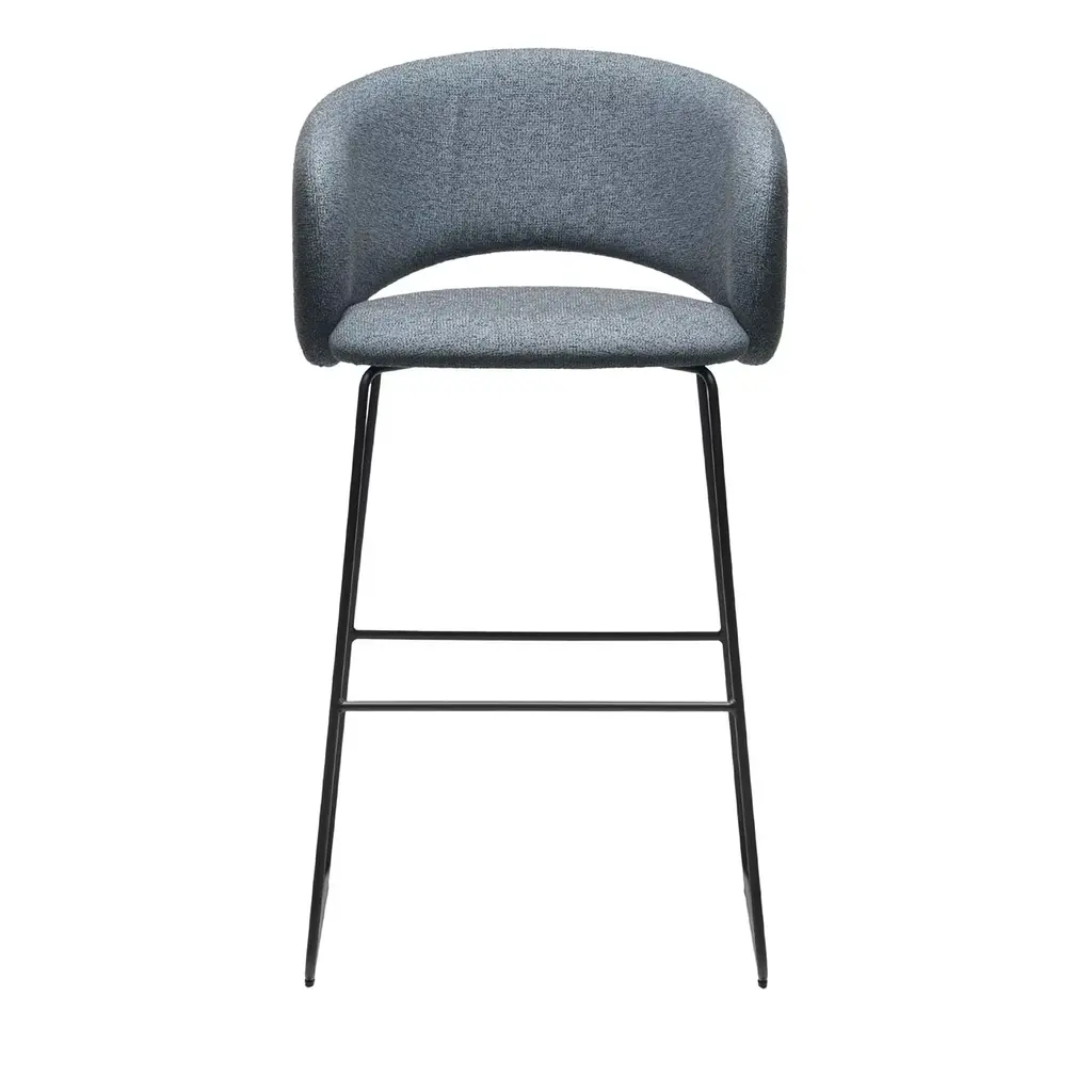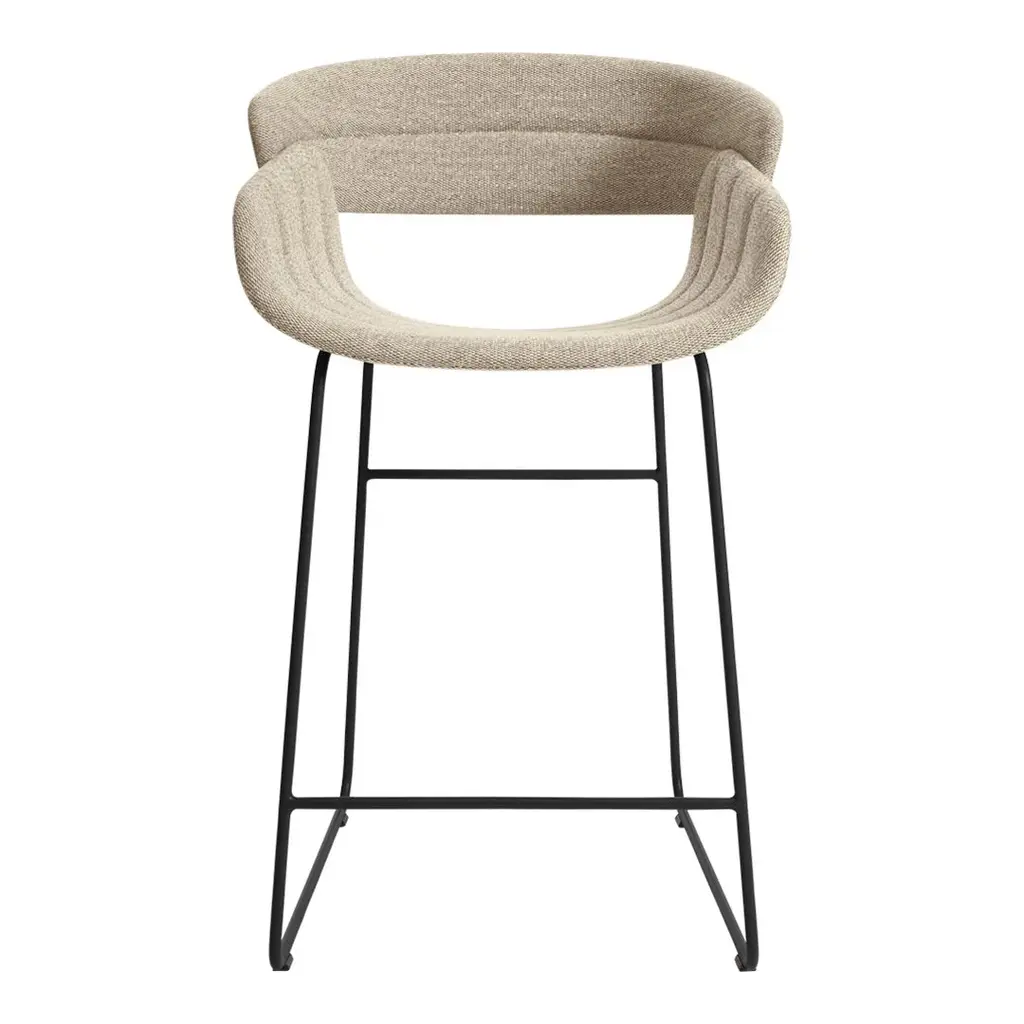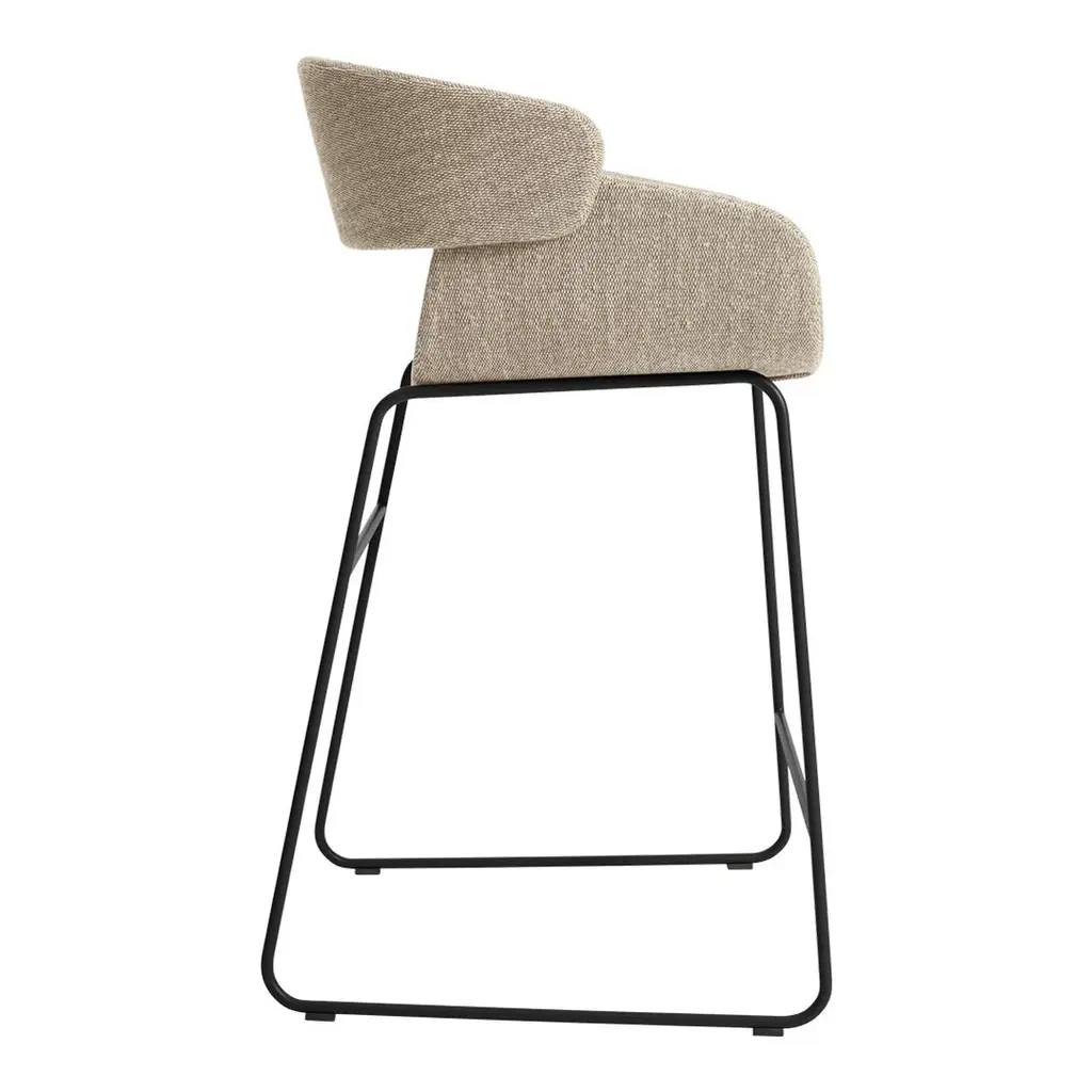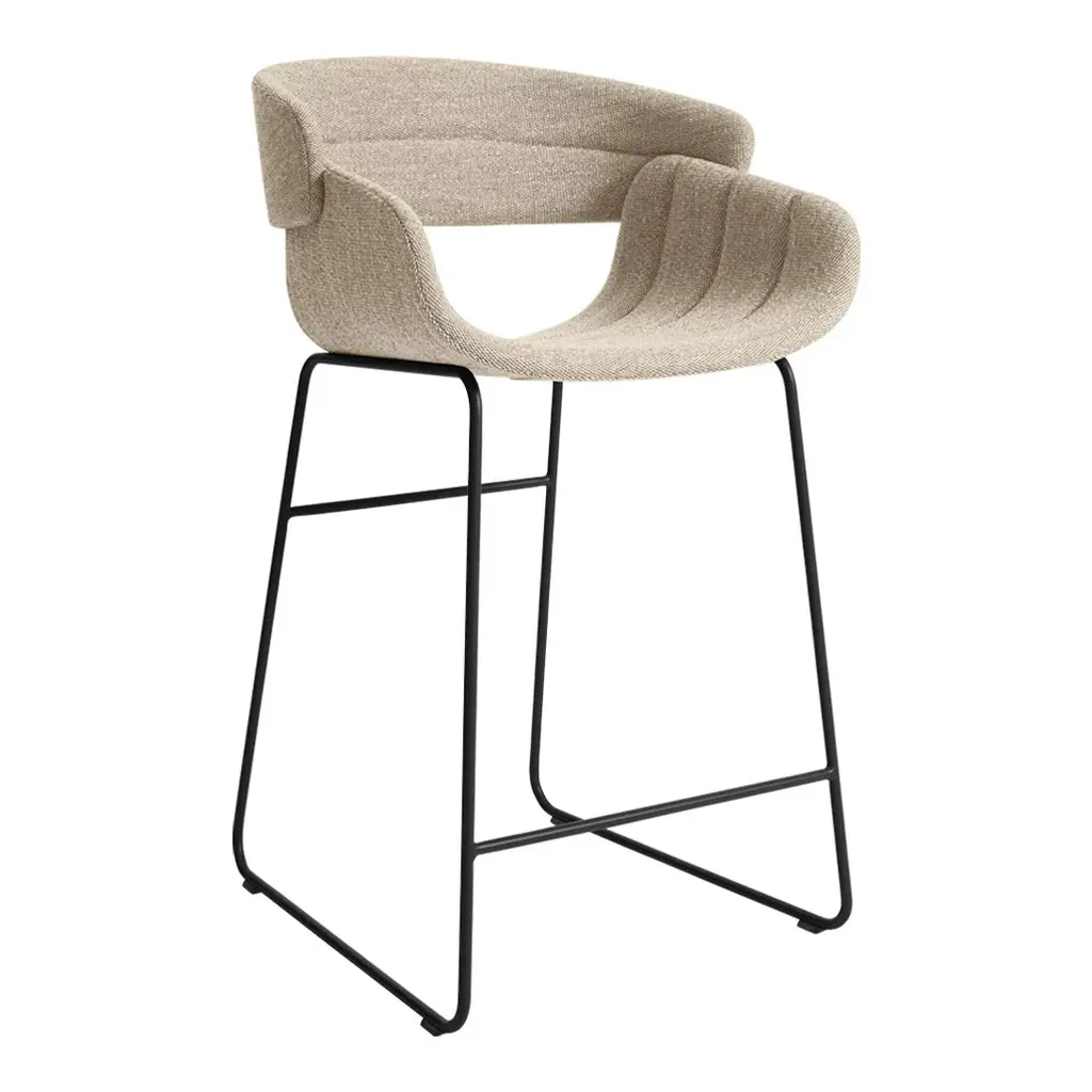 An upholstered seat and back work the curves and overlap just so to create a chair that invites you to sit down and stay awhile. The channel stitch detail may not improve the aerodynamics, but it sure does looks swell. With a color coordinated powder coated steel sled base. Also available in barstool and dining chair.