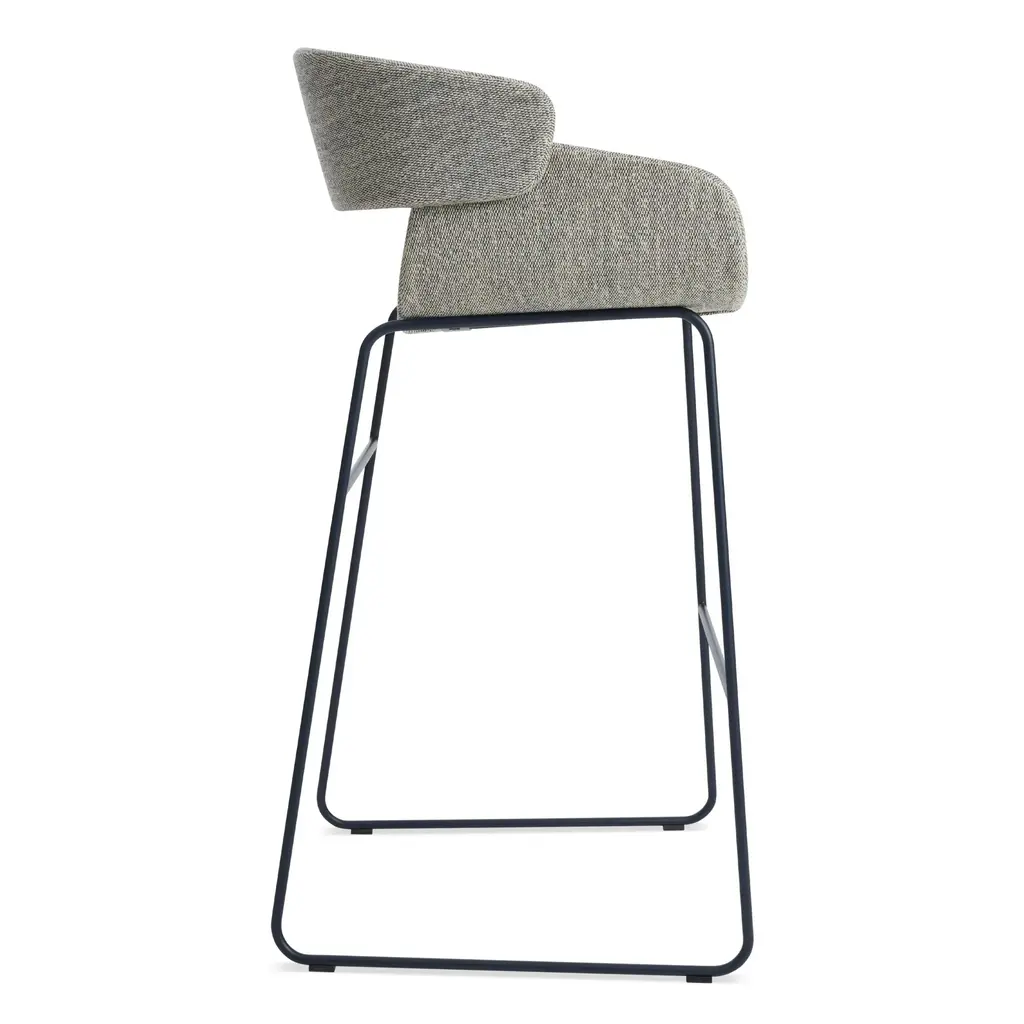Making a statement from any angle, the Racer Stool from Blu Dot is a stylish and comfortable seat ready to accent any kitchen island countertop or at-home bar table. Featuring an upholstered seat and back design comprised of overlapping curves, the channel stitch detailing along with the matching powder coated steel sled base, makes for an inviting modern barstool that invites guests to sit back, relax, and stay awhile.Highlights
