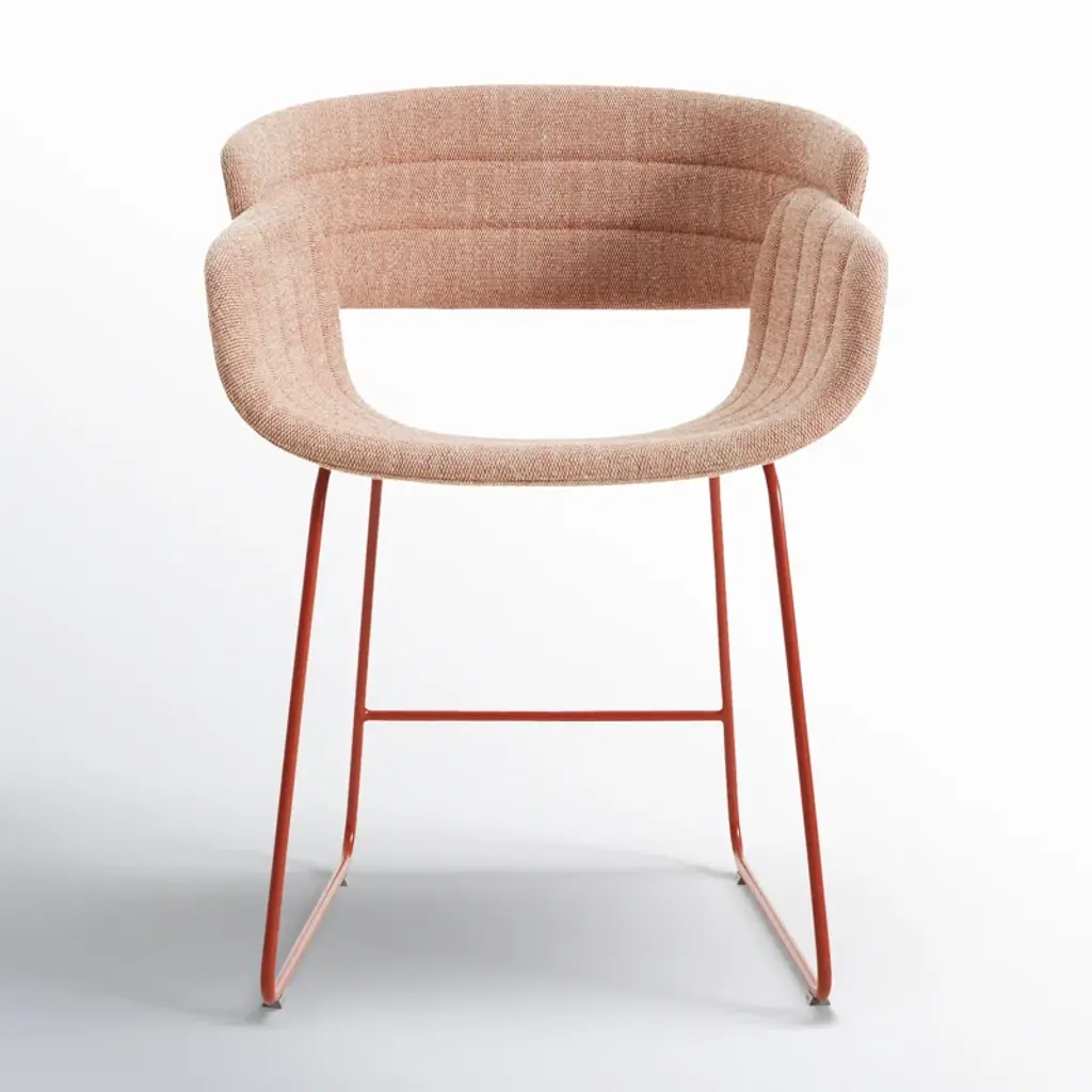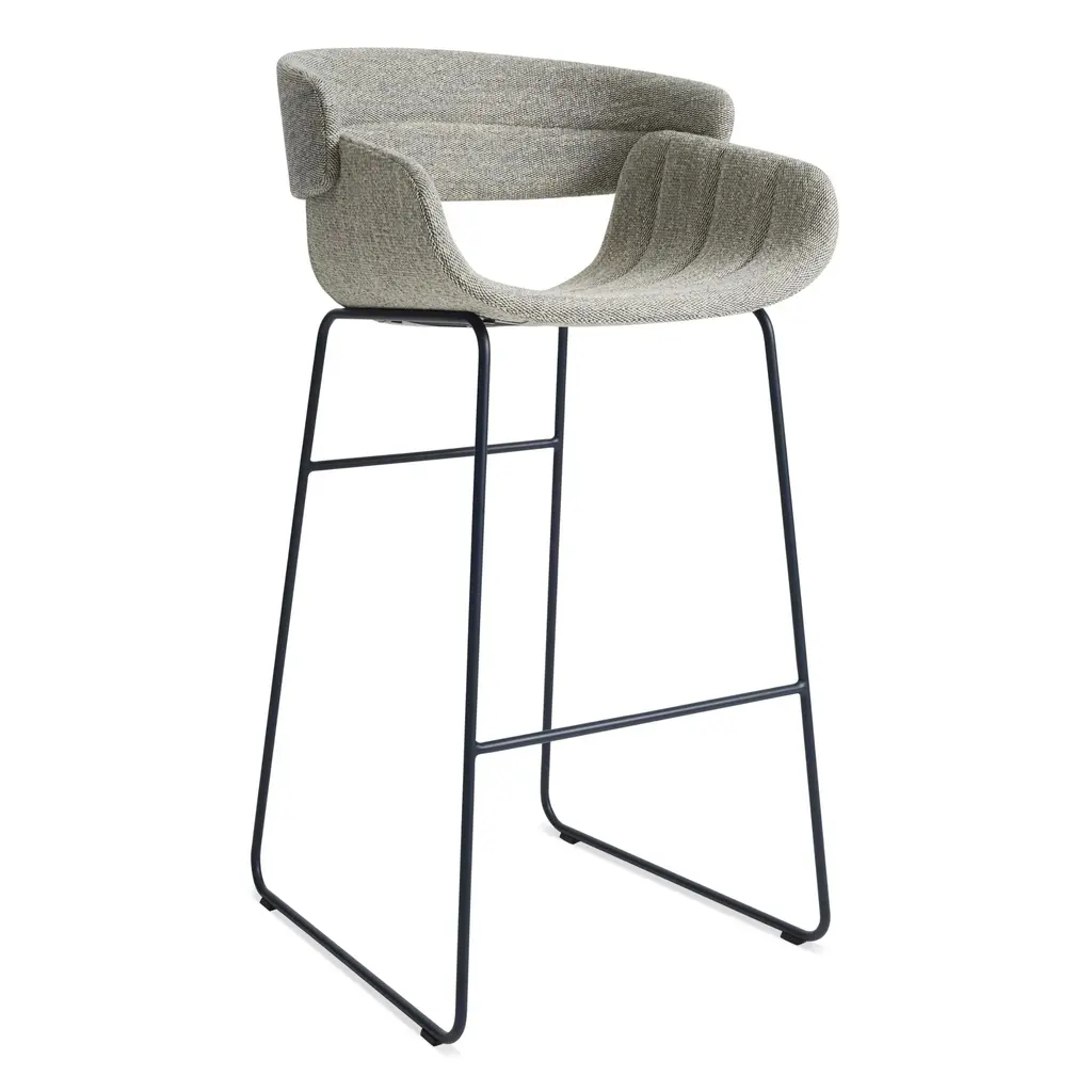 Making a statement from any angle, the Racer Stool from Blu Dot is a stylish and comfortable seat ready to accent any kitchen island countertop or at-home bar table. Featuring an upholstered seat and back design comprised of overlapping curves, the channel stitch detailing along with the matching powder coated steel sled base, makes for an inviting modern barstool that invites guests to sit back, relax, and stay awhile.Highlights