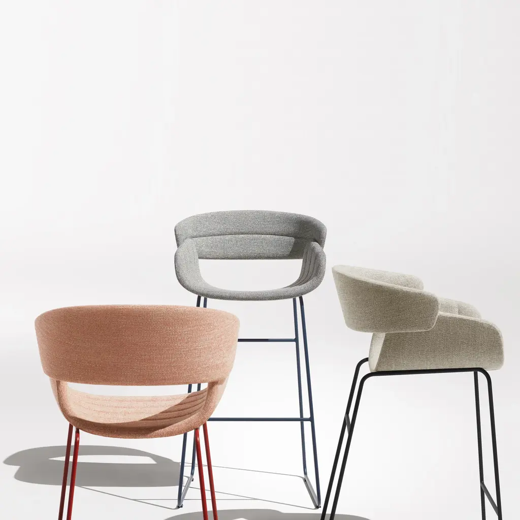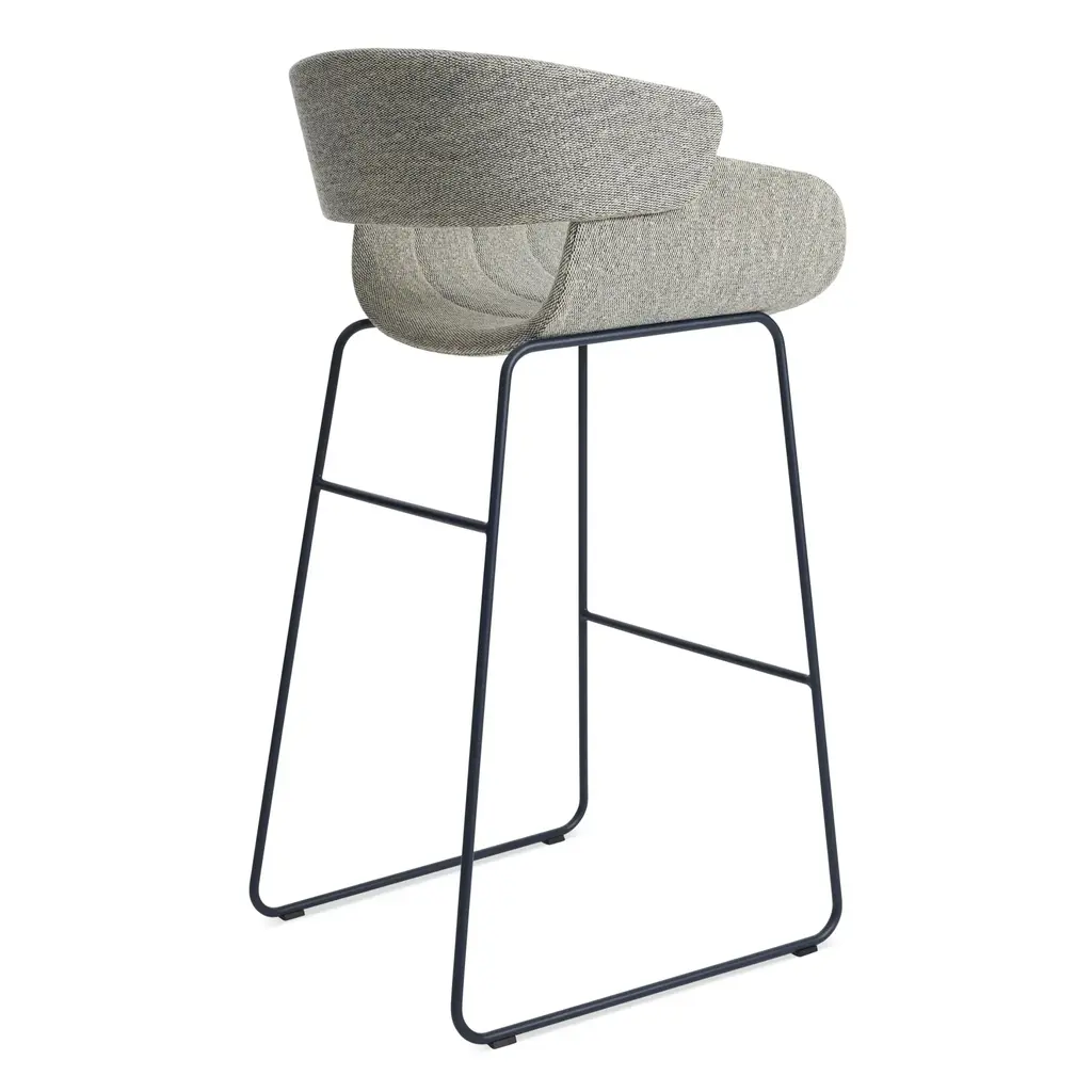 Making a statement from any angle, the Racer Stool from Blu Dot is a stylish and comfortable seat ready to accent any kitchen island countertop or at-home bar table. Featuring an upholstered seat and back design comprised of overlapping curves, the channel stitch detailing along with the matching powder coated steel sled base, makes for an inviting modern barstool that invites guests to sit back, relax, and stay awhile.Highlights