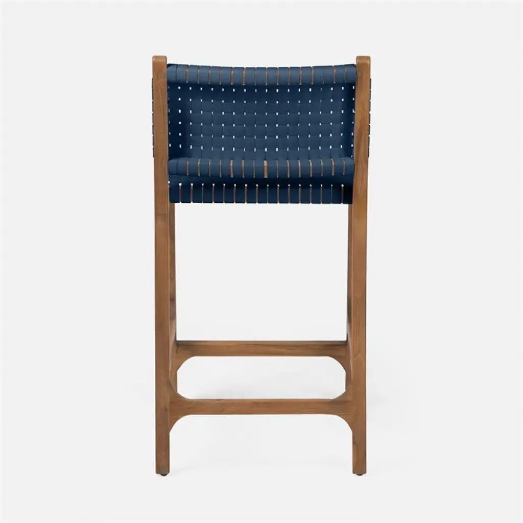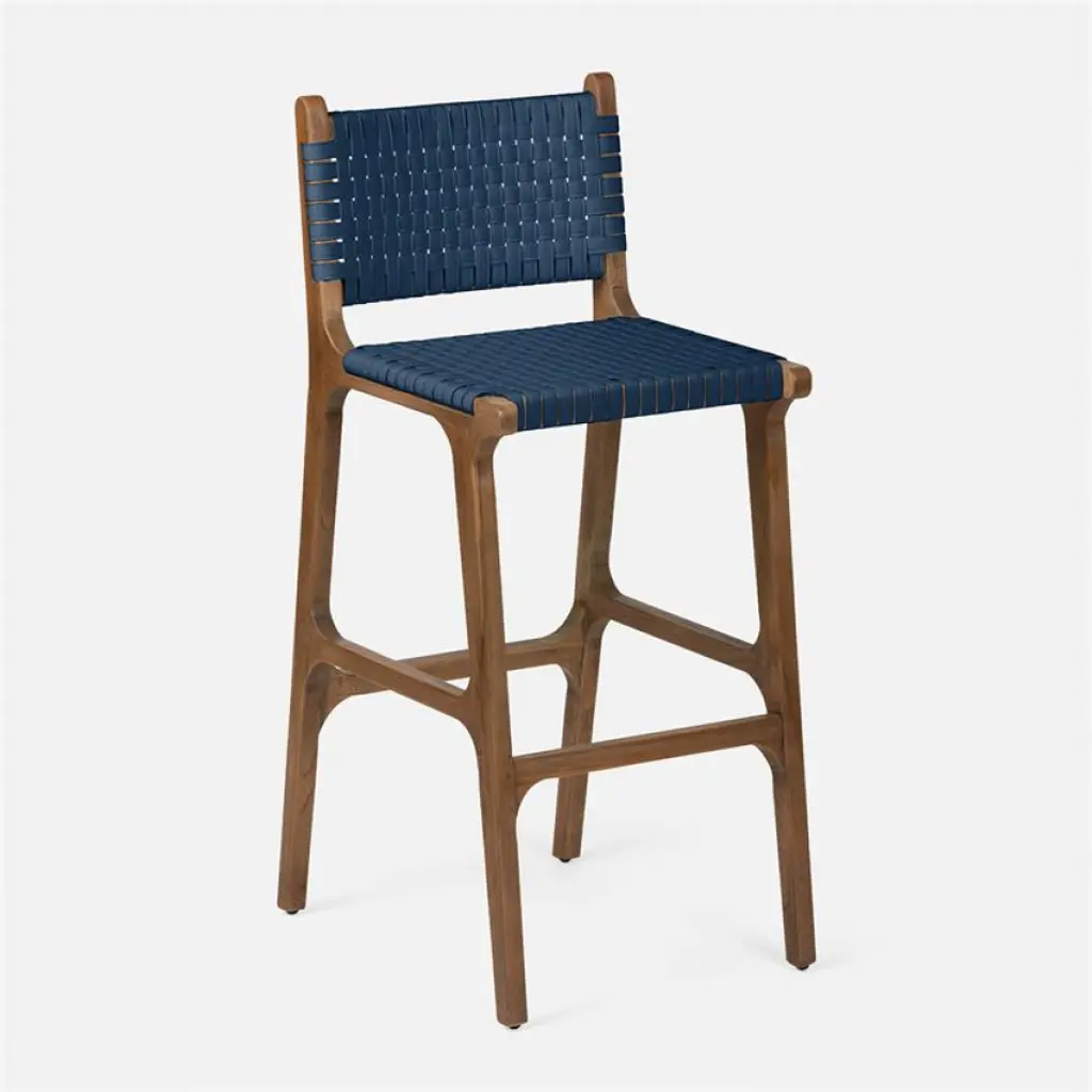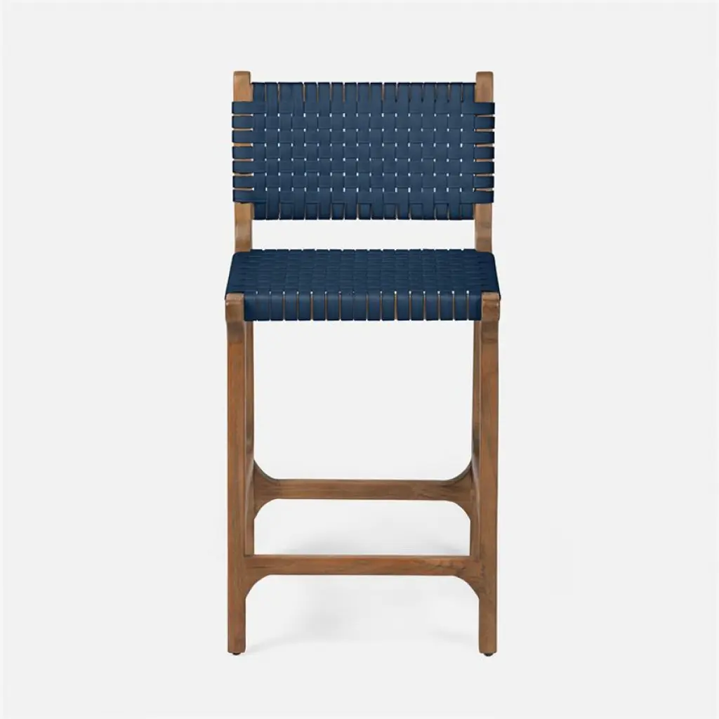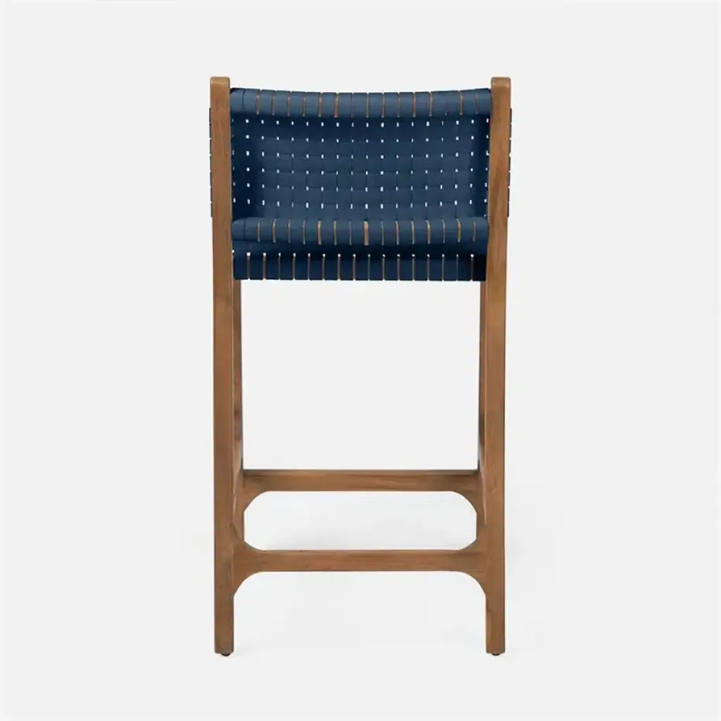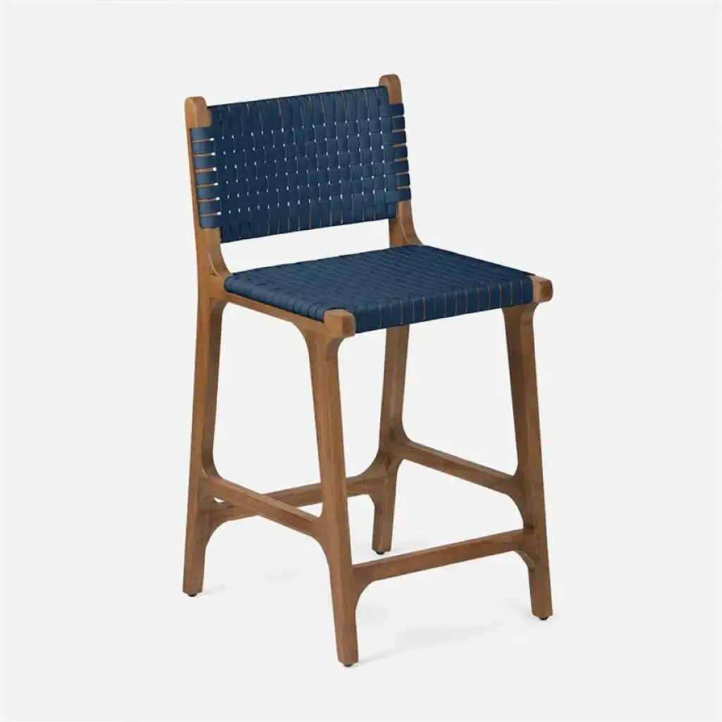 Rawley Indoor/outdoor Counter Stool 18 In W X 20 In D X 36 In H Flat Navy Faux Rattan Aged Natural Teak