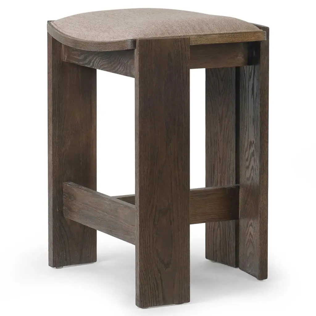 Reed Rustic Lodge Taupe Performance Brown Oak Counter Stool